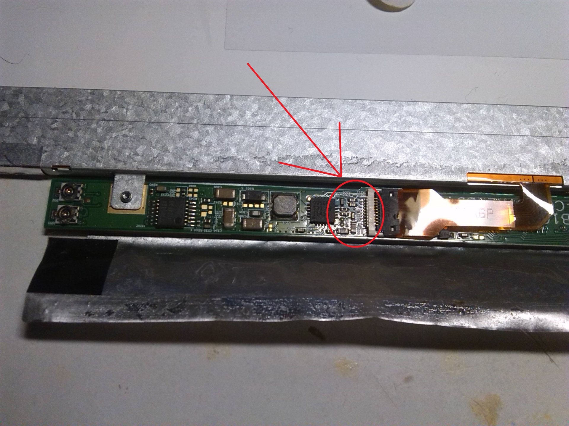 A jelölt csati a backlight led csatlakozója,a fedele is olvadt, kontakthibás lehet, de attól még a képnek nem kell változnia. Viszont az javítandó, mert ki fog égni.