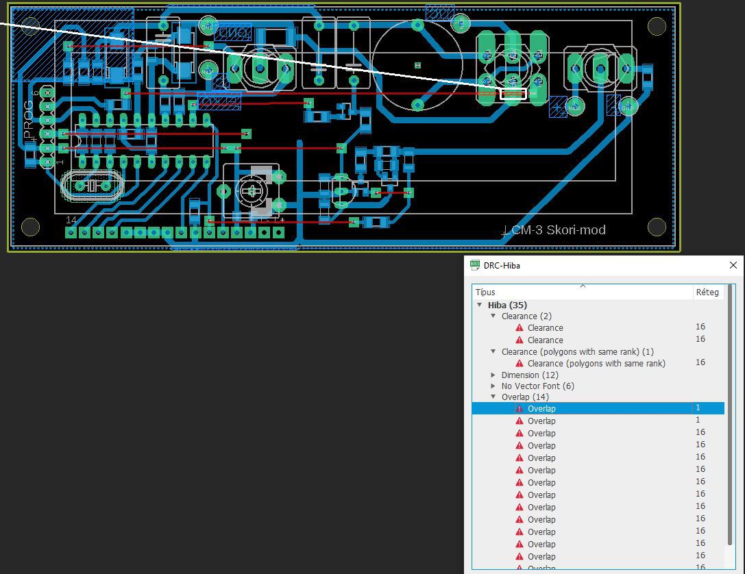 Ez annak idején egyoldalas panelra készült, és az alkatrész oldali vonalak átkötésként vannak megvalósítva. Kétoldalas panelként legyártás előtt, esetleg kicsit odébb kell húzni néhány vezetősávot, és már jó is lesz.