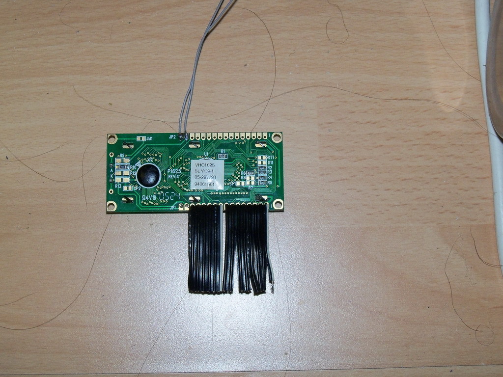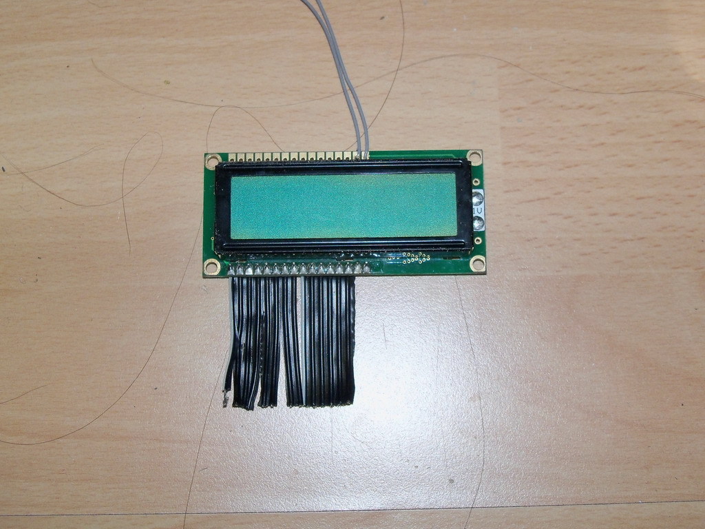 Nos, a kijelző úgy néz ki működik, a kontrasztot legalábbis tudom rajta állítani, a háttérvilágítás is megy 5V-ról, 51ohm előtéttel, habár piszkosul melegszik, majd lehet 2w-os ellenállást használok, csak az nincs itthon..