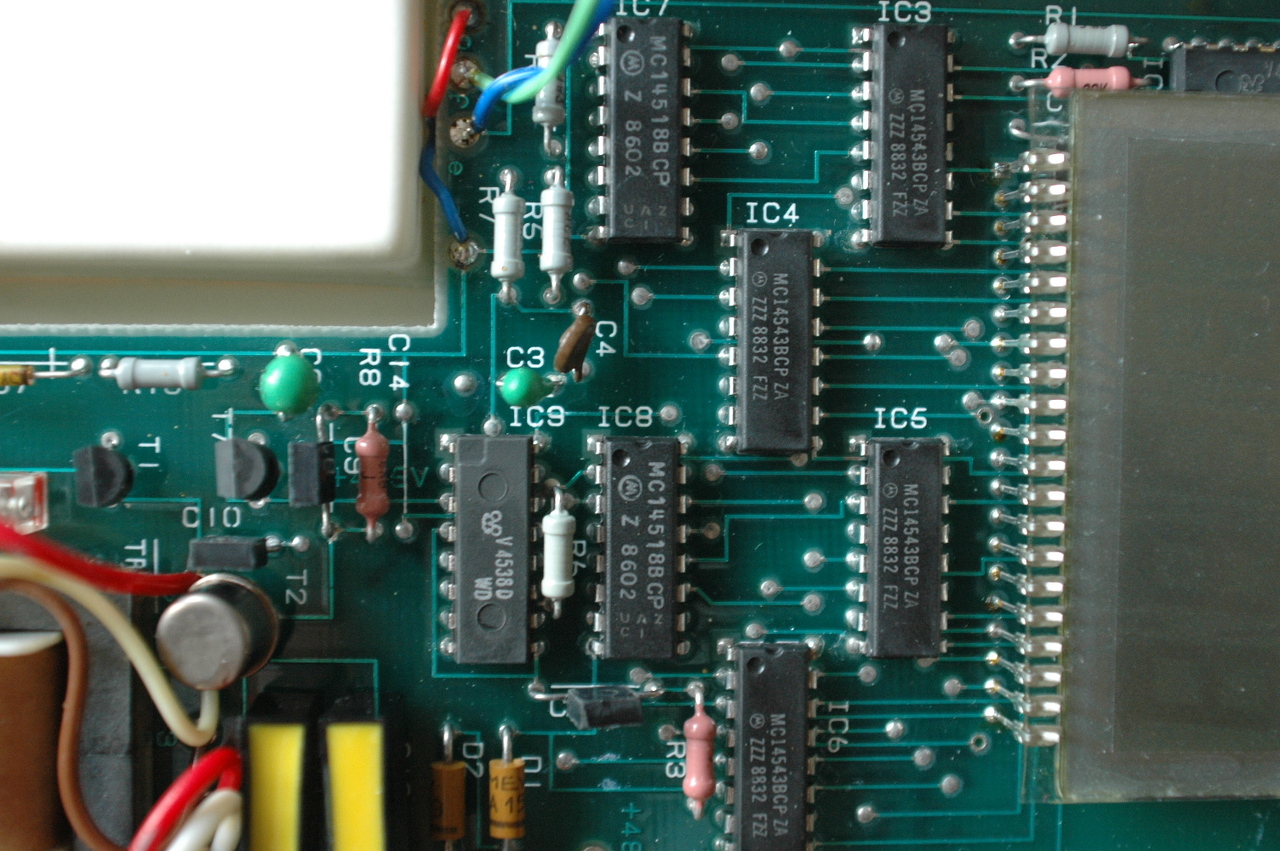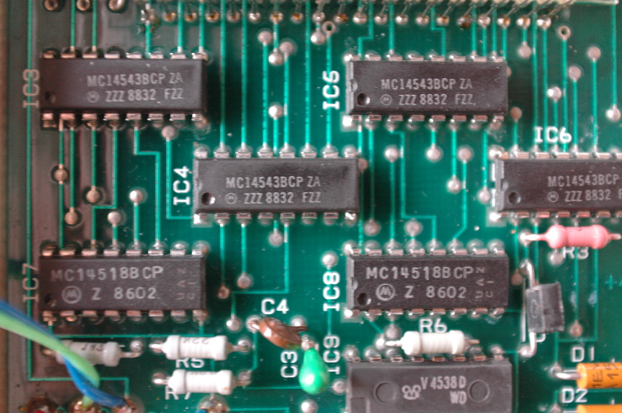 Hello! Ez valami 4 digites számláló, ahol a számlálást a 4518-ak, a kijelző hétszegmenses meghajtását, 4543-ak végzik. Ezen felül vannak még monostabil multik benne. Vagy is lehet valamilyen frekvenciát (impulzusszámot v. periódusidőt) mér ez az izé. De az is lehet, hogy bementi jel nélkül le van tiltva a kijelzés. Nem tudhatod, csak akkor ha tudod mi ez, megnézed az adatlapját az IC-knek, van rajza, vagy kirajzolod az áramkört.. üdv!