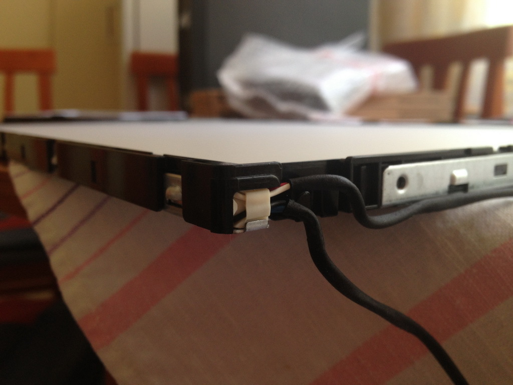 A fénycsövek az LCD panel mögött vannak és oldalra kihúzhatóak. A vezetékeik pedig jól felismerhetőek, mert viszonylag vastagabb a szigetelésük.