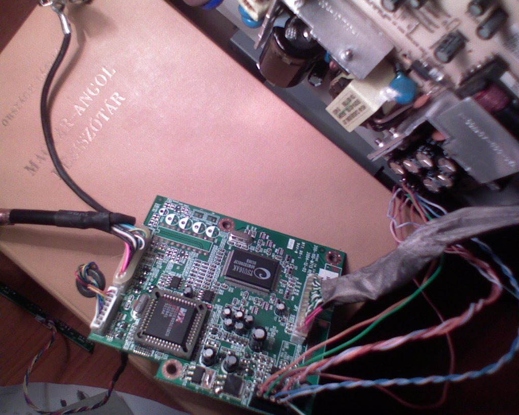 Vga-ból jövő bemeneti csatlakozóra gondolsz? Illetve az analóg digit konvertert hol kéne keresnem? Nem vagyok tisztában ezzel, gondolom valami soklábú ic-t a kisfeszültségű panelon. Csináltam róla egy képet.