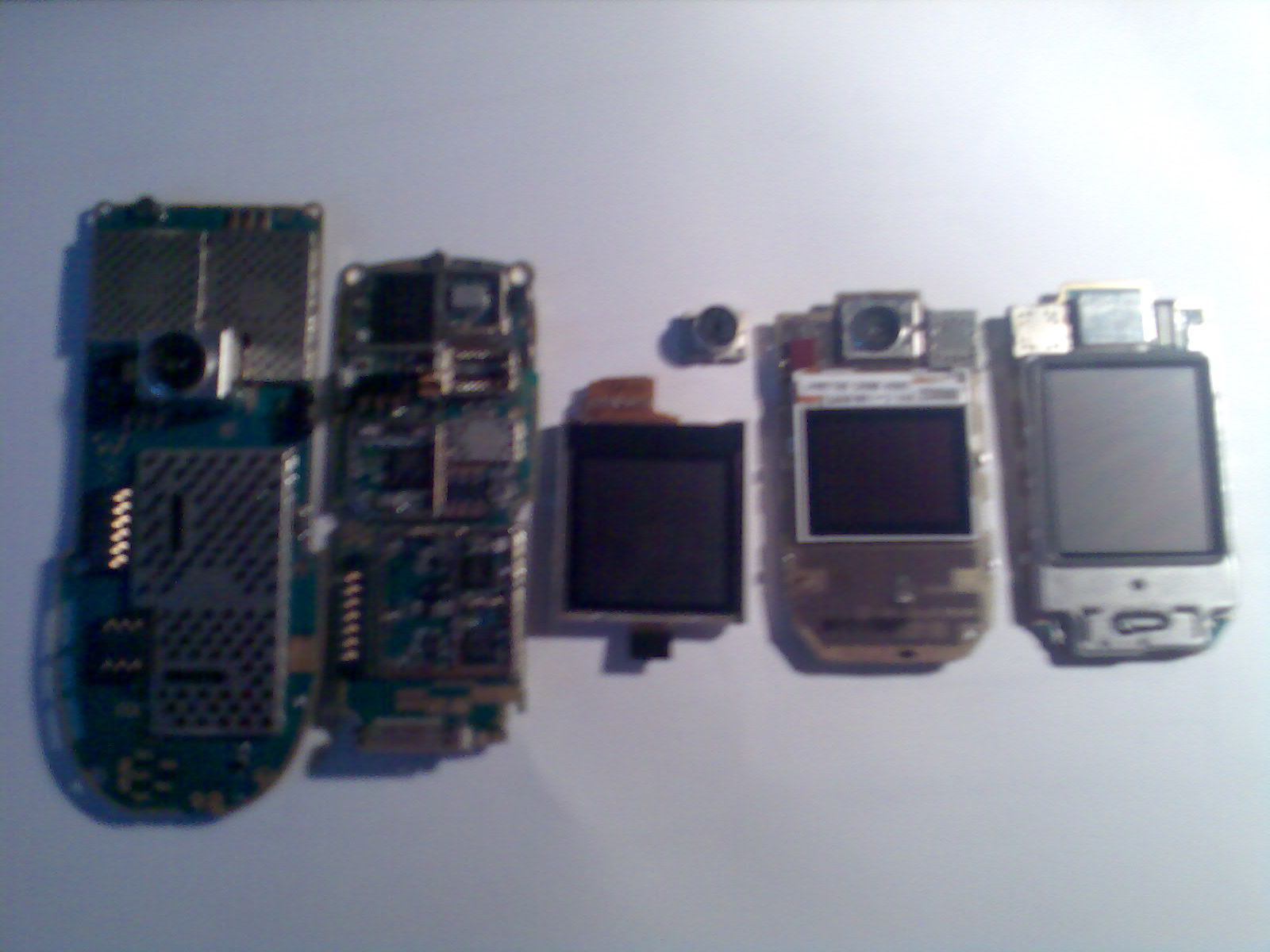 Jobbróll balra haladva: 6101 egyik fele 6101 másik fele, 6230 display és kamera ( ez a kamera nagyon frakó mert a másik felén forrasztható tappancsok vannak), 6230 belseje jobb alsó sarok rádió felette brútusz (azt hiszem legalábbis), aztán végül egy 3650-es. Ezeken kívül van egy dobozom még pár érdekességgel.