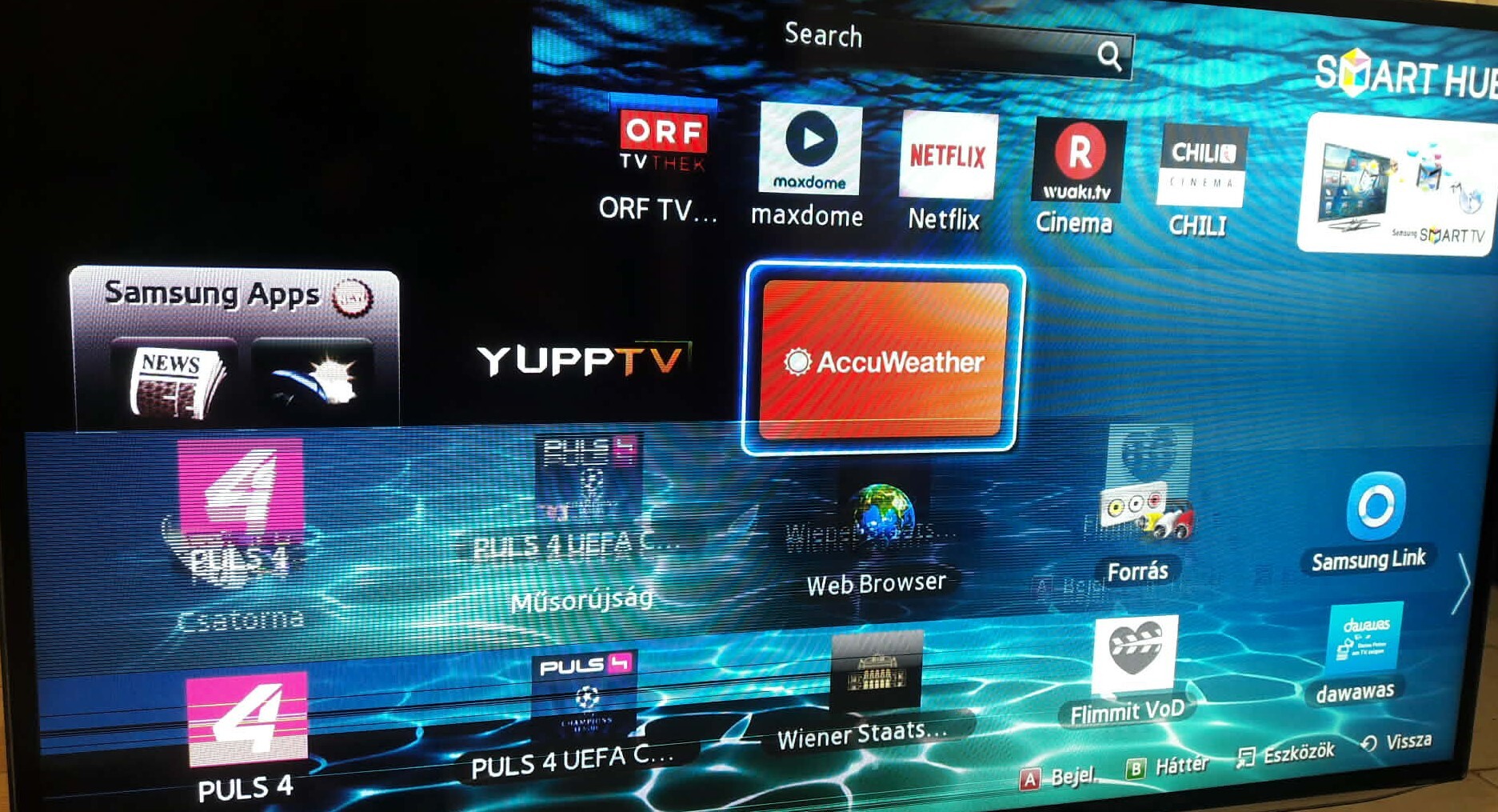 Samsung TV kijelző problémaÜdvözlet!Kérdeznék, hátha tudtok segíteni. Hozzám került egy Samsung UE55ES6300S típusú TV, amit hibátlanként vásároltam, de sajnos nem igazán van a helyzet magaslatán. A képernyőn vízszintesen van egy másabb árnyalatú sáv, illetve pár vonal, amik közbe-közbe eltűnnek, majd vissza jönnek, illetve néha teljesen szétesik a kép a menüben is. Ez a jelenség javítható, vagy teljesen kuka a TV? A választ, segítséget köszönöm, mellékletként töltöttem fel képet a leírtakról!
