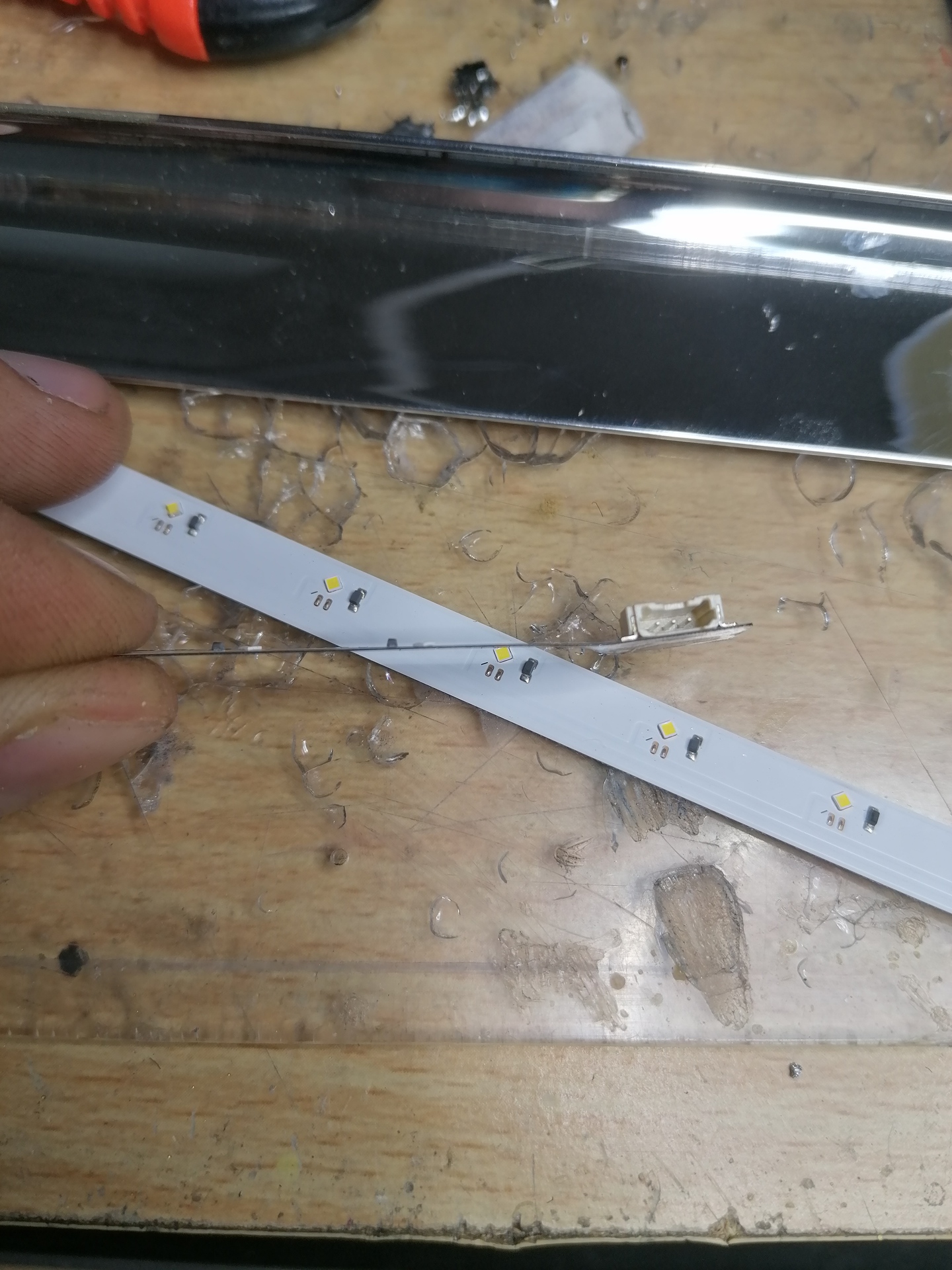 Az eredeti hűtőbordának nincs baja, csak eimatt hezitálok, hogy elég vékony lapon vana led azalag, nehogy megsérüljön amikor rakom össze.