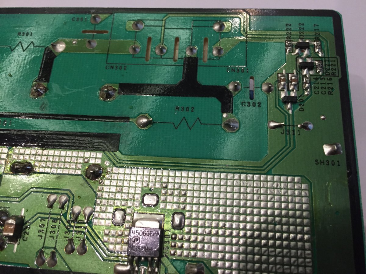Ha nem értesz a javításhoz vagy nem vagy képzett a műszerhasználat terén, akkor nem neked való ez a tévé. Minimum egy hűtőborda hiányzik, meg ki tudja, hogy még milyen hiányosság van azon táppanelen.