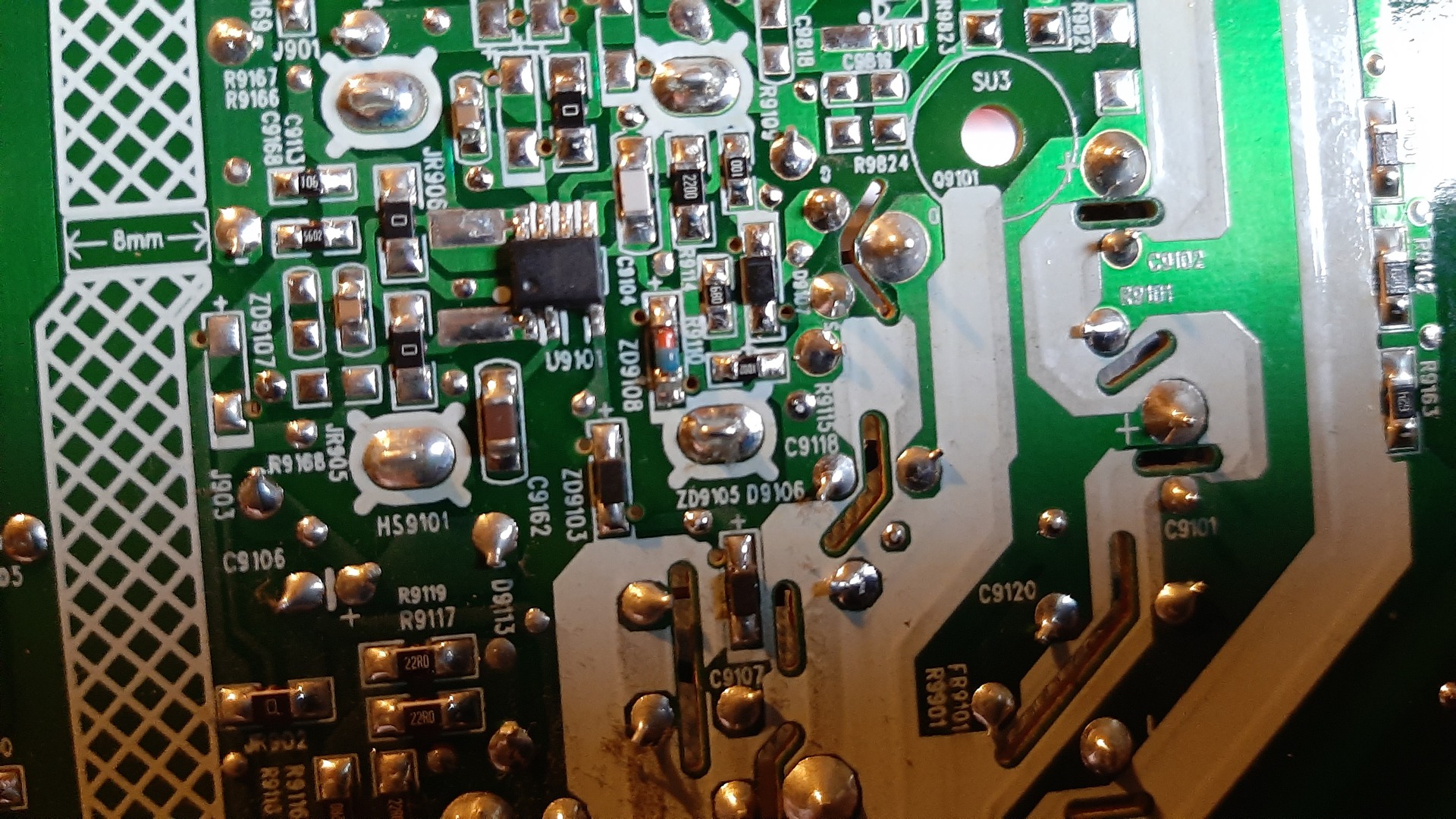 - C9118 kondenzátor (101/1kv) láthatóan "kipukkadt" - FB9101(R9101) biztosíték-ellenállás (0,1Ω/1W)szakadt - ZD9108 zener a túloldalt zárlatos - 3s121 IC -nem tudom. Zárlatot nem mérek, attól még lehet rossz. Van egy olyan elképzelésem (lehet, hogy nem helytálló), hogy mikor a kondenzátor feladta, akkor zárlatosodhatott meg a zener, és a biztosíték-ellenállás tette a dolgát (pl azért maradt meg a mosFet, meg az ő S lábára csatlakozó 0,2Ω/2W ellenállás is épségben). Emiatt szeretnék a biztosíték ellenállás helyébe ugyancsak biztosíték-ellenállást, de nem találok olyan értékűt, csa 0,22Ω/1W-ost. Szerintetek betehető az helyette? Magamtól merem is, nem is. Ha nem érdemes, hát betehetek egyszerű ellenállást is, 0,1Ω/1W-ist, olyant találok -csak nem vagyok biztos benne, hogy mégegyszer védeni fog... (Közben olvasgatom ezt is ő például e három alkatrész cseréjével megúszta. Biztató) A hozzászólás módosítva: Jan 2, 2023