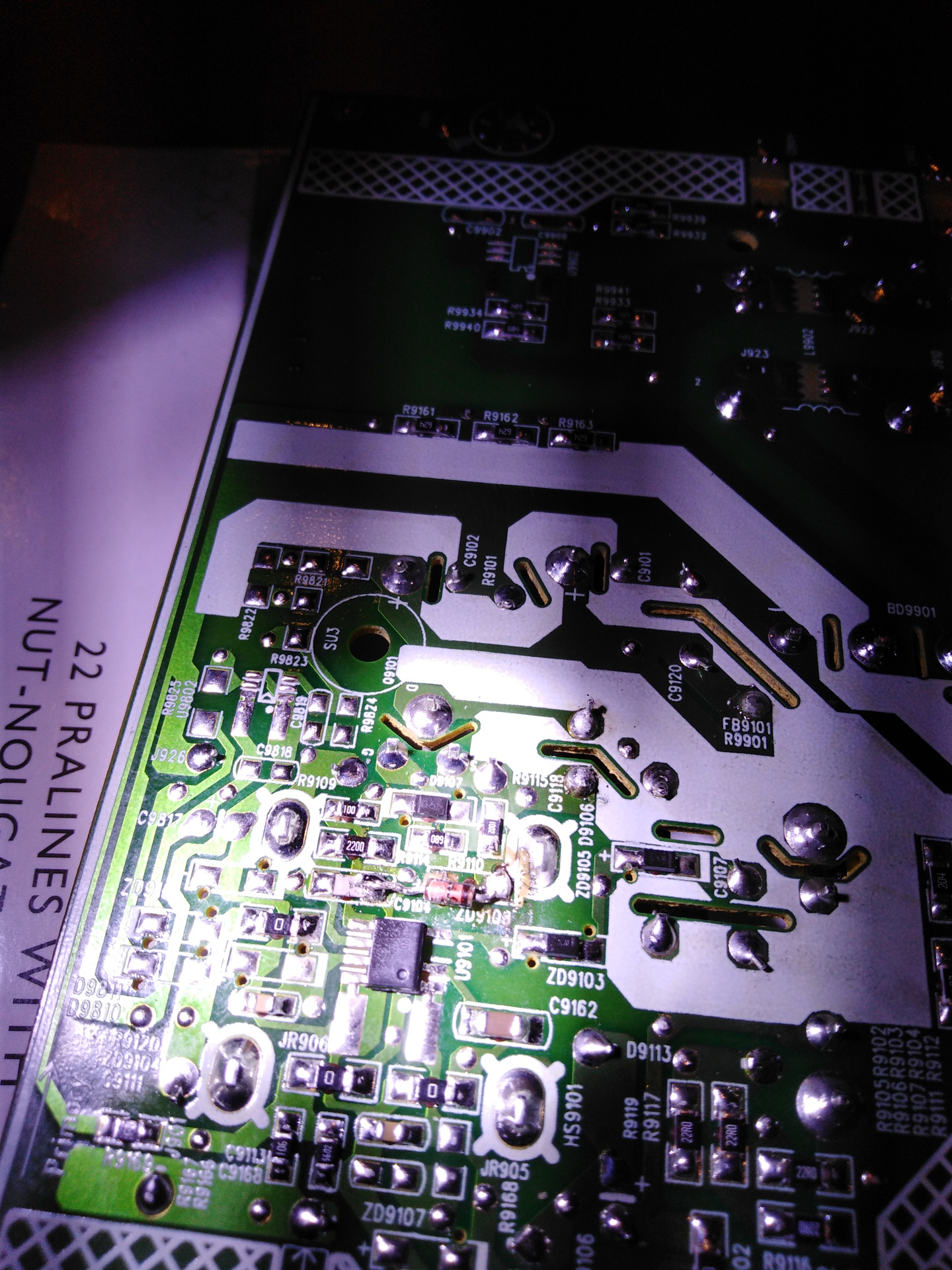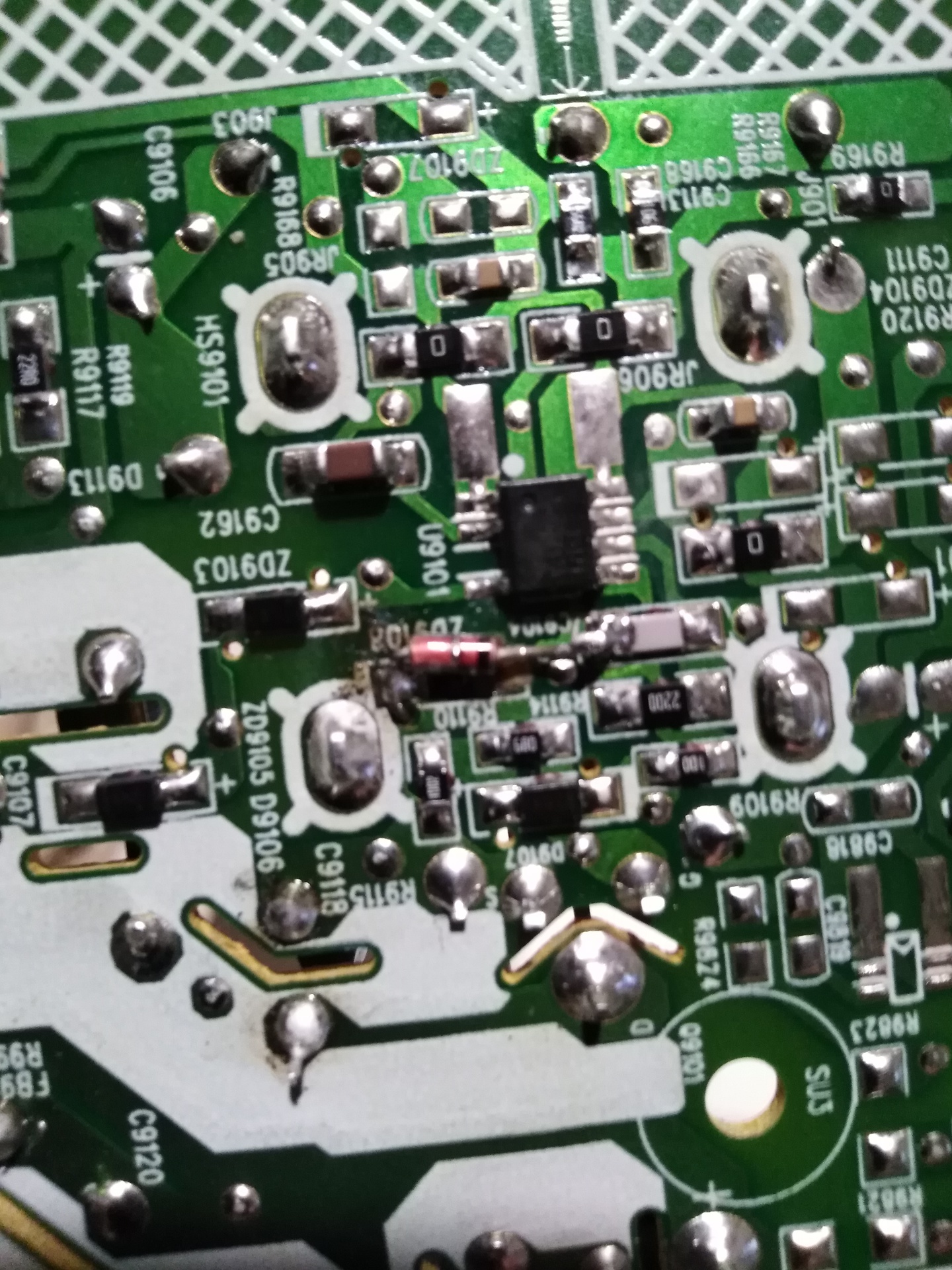 -5,1v/0,5w zener (ZD9108) -0,1Ω/1w ellenállás (akkora fusible-resistort nem találtam, így egyszerű ellenállás lett) (FB9101-R9901) -100pF/6kV kondenzátor. Ekkora van, elég lett volna 2kV-os, de nem találok.(C9118) Megy a tápegység, 12,6V van a (névleg) 12V-os ágon, 16,06V a másikon. A hozzászólás módosítva: Jan 10, 2023