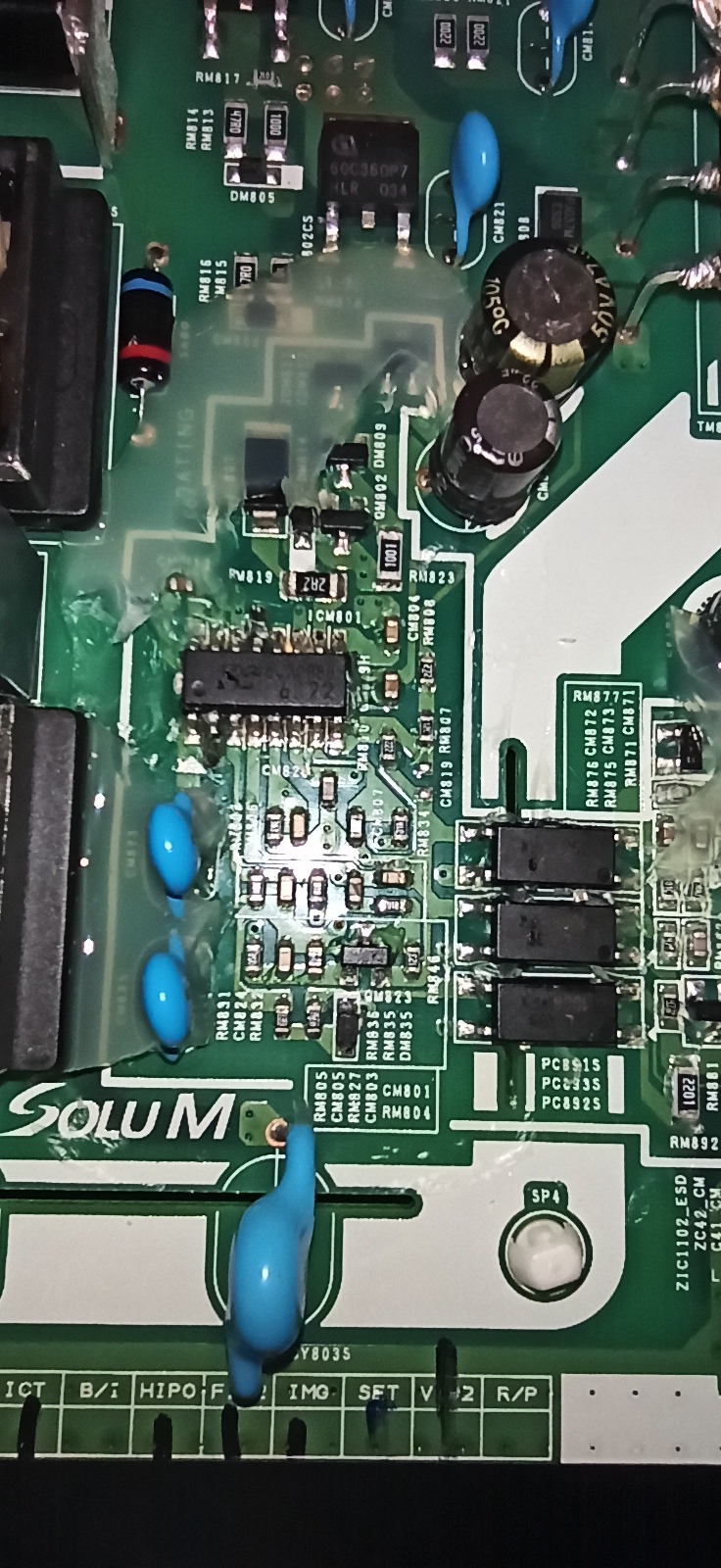 A tápban lévő dióda alatt a nyák lassan szenesen meg van égve, ez alapján nem tartom irracionálisnak a vakon átkondizást, főleg, ha annyira nem ért hozzá, hogy csak oldalak fognak szöveggel elmenni meg veszélyes mérésekbe kezd.