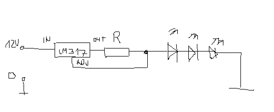 1 db ellenállás kell hozzá, és überstabil. Az ellenállás értékét úgy kell számolni, h I=1,2 / R. Tehát, ha 350 mA kell, akkor 3,4285 Ohm ellenállás kell. A teljesítményére figyelj oda, mert az természetesen I^2 * R, azaz 0.42 W. Jobb ha egy kicsit túméretezed, 1 vagy 2 W-os ellenállást vegyél. a bekötést mindjárt rajzolom, csak nézd meg a lábakat a datasheet-ben! Ja és kb 3-4 db LEDet tudsz sorba kötni vele