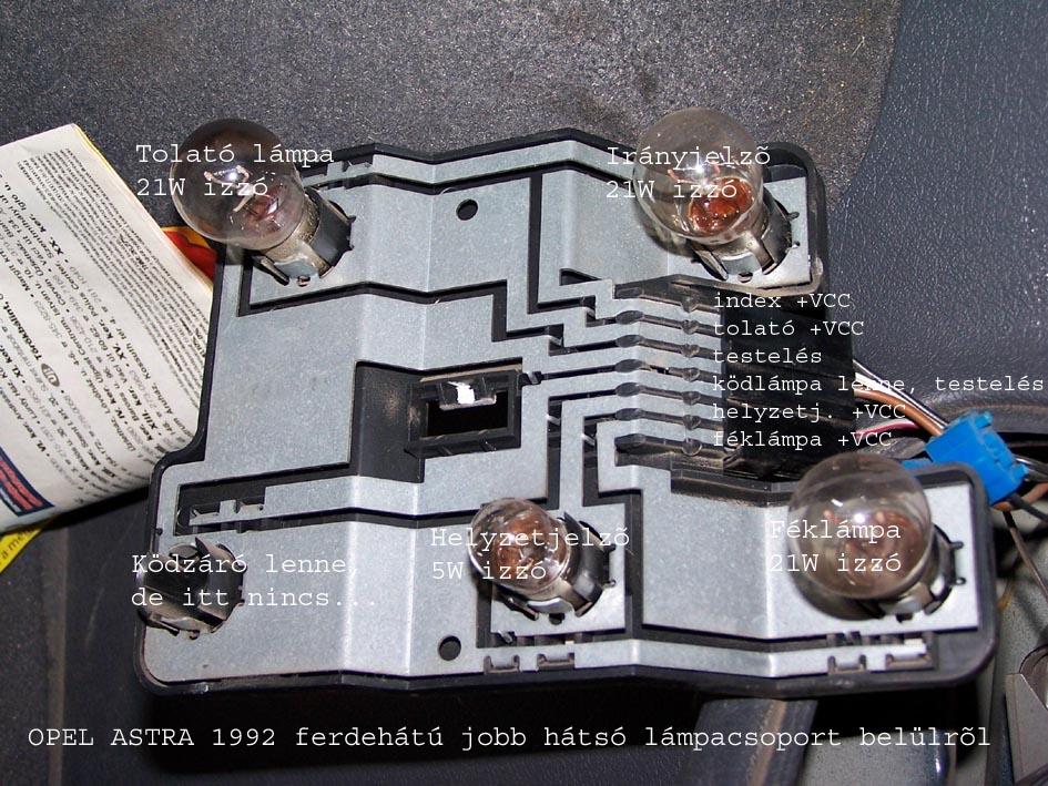Az 1. képen a korábban már említett "Piranha" LEDes lámpa van ugyancsak a ködlámpa helyén. Szerintem látszik, hogy gyengébb a 2*1W-nál... A 2. képen az autóm jobb hátsó lámpájának vezetékezése látható. Csak a ködlámpa csatlakozása kompatibilis a kereskedelemben kapható LEDes késztermékekkel, a többi izzó foglalata gyárilag fordított!!! Miért? Nem tudom Idézet: „Csak a ködlámpa csatlakozása kompatibilis a kereskedelemben kapható LEDes késztermékekkel, a többi izzó foglalata gyárilag fordított!!! Miért? Nem tudom” Nem vagyok benne biztos, csak egy tipp: Talán azért van ez fordítva, mert a ködzáró fény a KRESZ (és a többi Uniós ország hasonló jogszabálya szerint) csak a felkapcsolt tompított fény mellett alkalmazható. Önmagában nem. Sőt, parkolófény (értsd: helyzetjelző) mellett sem. De ez csak egy tipp. (Lehet, így oldották meg a fritzek, hogy ne lehessen "véletlenül" bekapcsolni a ködzárót a tompított nélkül...)