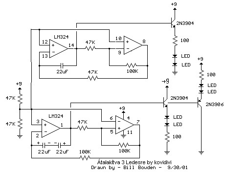 A rajz alapján visszarajzoltam egy érthetőbb formába a kétledes kapcsolást, de megmondom őszintén nem látom át a működését, annak ellenére hogy a kedvenc építőelemeim a műv.erősítők. (Miért nincs pirulós smile?!) Van egy olyan érzésem hogy te ragaszkodsz az LM324-hez, ezzel viszont egyenlőre nem látok megoldást a négyledes verzióra. De már engem is érdekel, töröm rajta a fejem...