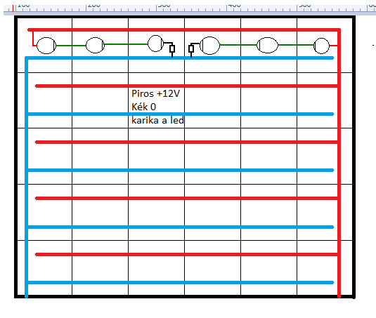 Egyébként 52 Zöld Ledből állna az egész kb.15V kell hozzá! Olyanra gondoltam még hogy az utólsó ledek a csík alján pirosak lennének és ahhoz megkora ellenálás szükséges ? Eszt még majd átgondolom . De csináltam egy kapcsolási rajzot ! Köszönök előre is válaszokat!