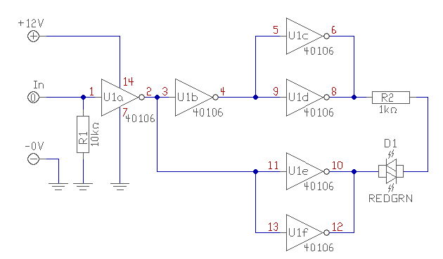 Hogy lehetne megoldani az alábbi logikai kapcsolást uC- nélkül ? CD4011 re is gondoltam de nem vagyok túl jártas ezekben az analóg(and, nand, or, xor....) ic-k ben. Tudnátok segíteni egy rajzzal? A led egy 3 lábú led, közös gnd-vel. Szimmetrikus tápot kéne figyelni vele. +-15V ot. Köszi!