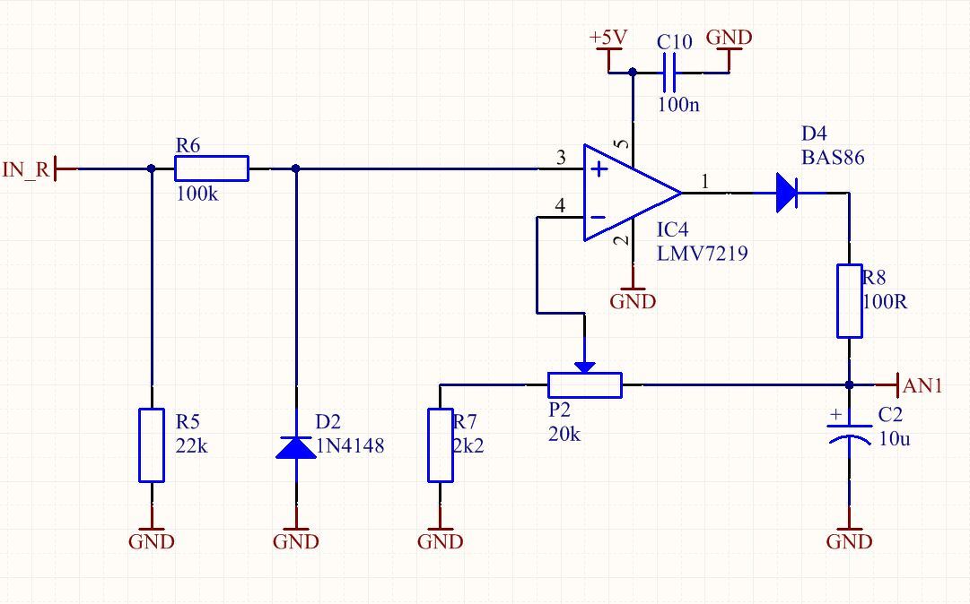 A diódához az R9 ellenállást, mindössze azért javasoltam, hogy az eredeti elgondolásnak legyen műszakilag valami értelme. Mert ennek a diódának semmi értelme/jelentősége nincs. Oda ugyanúgy egy feszültségosztó megfelelt volna, amivel a maximális kijelzési szint beállítható. (Akár itt is egy trimmer.) Mert a lényeg, hogy a maximális kivezérlés a GND körül lesz, de el nem érheti azt, hiszen a csúcsegyenirányító kimeneti tranzisztora eleve nem képes a GND-t megközelíteni. Ezért kell a komparátor referencia bemenetét a GND-től minimális szintre megemelni, de természetesen lehet az magasabban is. De egyáltalán nem kötelező ezt egy diódával tenni. Igen, ha csökkentenéd R9 értékét, nőne a dióda munkaponti árama és ezzel a nyitófeszültsége is. De ez nem egy lineáris változás, hanem a nyitóirányú karakterisztikát követi. ioda_IV_karakterisztika.jpg" target="_blank" rel="nofollow" >Karakterisztika.. Igen, a hangszóró kimenetén mérhető feszültséget kell mérni, és ez szerint beállítani a P1 potenciométert. De a hangjel nem egy statikus érték, hanem dinamikusan változik, így igazából ennek csúcsértékét oscilloszkóppal lehet leginkább látni. (Természetesen egy trafóval és a P1 tekergetésével tudod tesztelni a gyakorlatban is a kapcsolás működését, ahogy írtad.) Amit tudni kell.. A csúcsegyenirányító feszültségerősítése 1 körül van. A bemeneten az R1/P1 osztó a feszültséget a harmadára osztja le. mivel a csúcsegyenirányító 3,3V..0V tartományba dolgozik, ennek háromszorosa lesz a minimális bemeneti feszültség, tehát ez kb. 10V csúcsértéket jelent. Ettől a bemeneti jel csak nagyobb lehet. Hídkimenetű erősítőnél, csak az egyik kimeneti pontra teheted a kivezérlésjelződet, mert ha az erősítő táp és a kijelző táp közös lenne, zárlatot hozol részre.