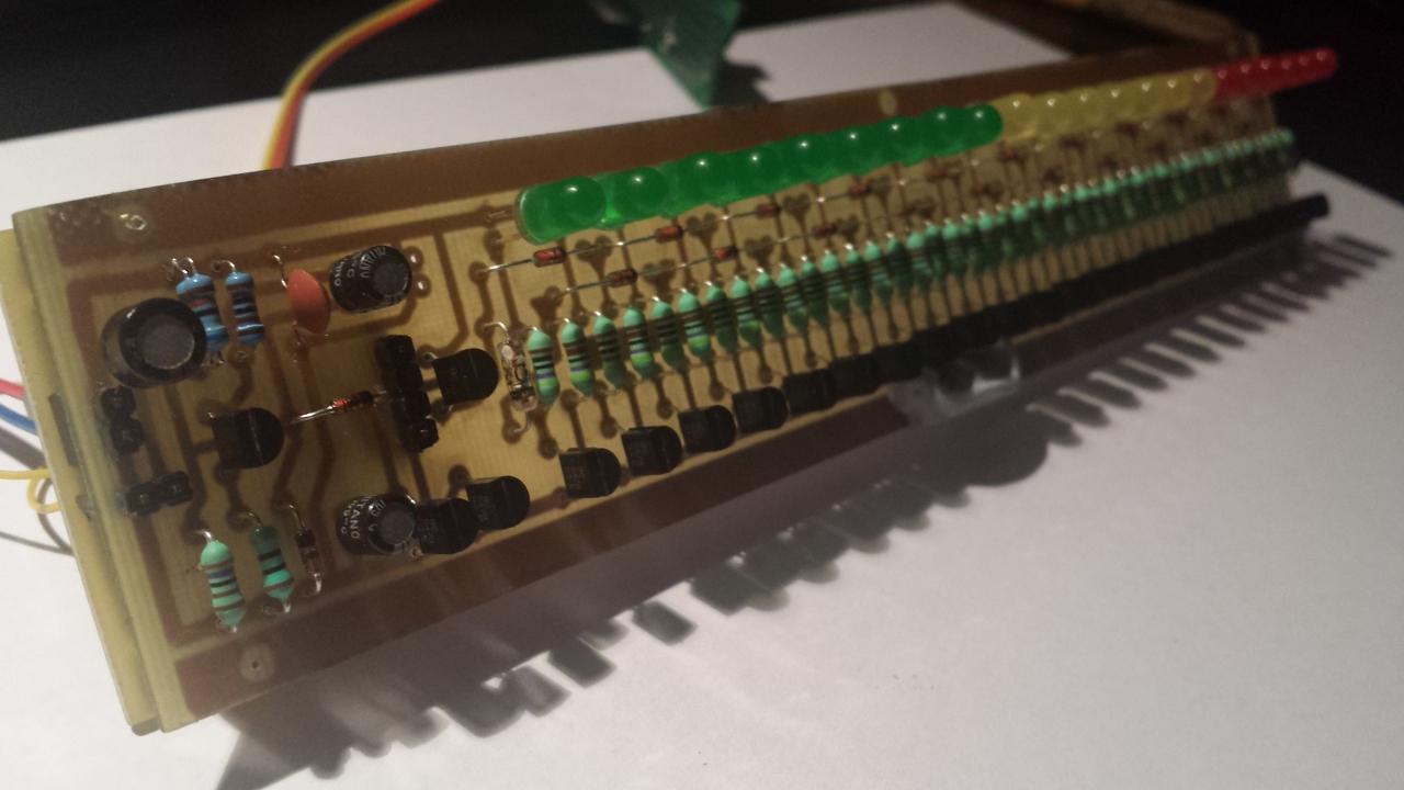 Idézet: „Az én ízlésem szerint az első talán elmegy, de a többi használhatatlan. Azok nem kivezérlést jelzők, hanem inkább fényorgonák, mert csak ütemre villognak. Persze lehetnek egyedi igényeid.” Teljesen igazad van, nekem is az alapkapcsolás (ami tökéletes) tetszik a legjobban. Azonban a kritériumok a következők lettek: -12V tápfesz, max 16V. -min. 20 led -klasszikus alkatrészekből épüljön fel, ne tartalmazzon IC-t, vagy mikrokontrollert, Arduino-t Megjegyzem, inkább látványelem mint visszajelző a funkciója - persze a legjobb az lenne ha tudna úgy megjelenni mint az alapkapcsolásod. A hozzászólás módosítva: Aug 17, 2016