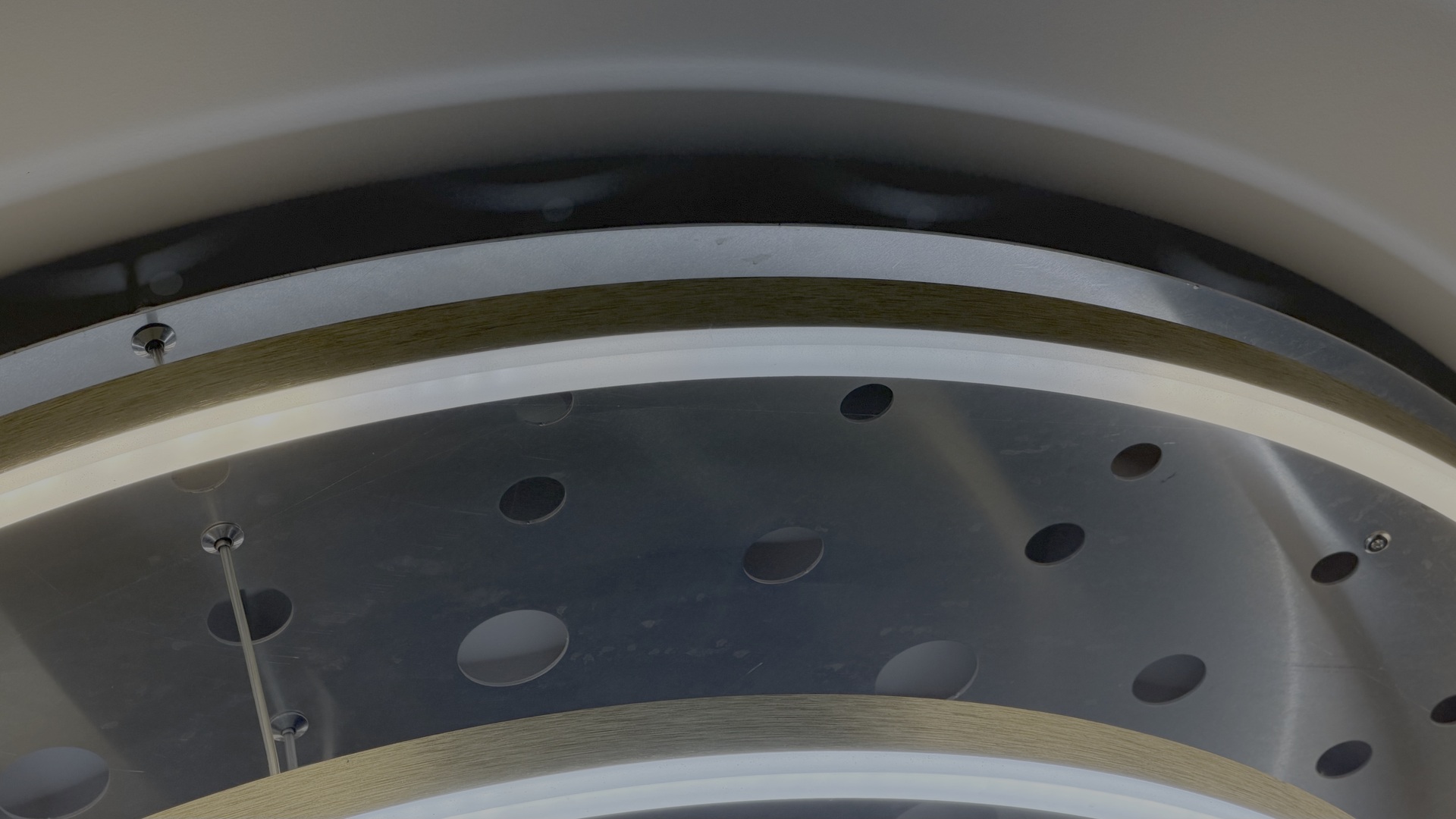 Nem a felfelé álló fenekére ragasztom majd, nehogy a kényszerek során, az ívek tartása miatt megtörjön a LED-csík, hanem az U profil oldalfalára. Ahhoz hogy a fény a matt plexi gyűrűre verődjön mégis, - ami persze lefelé néz, - egy a másik oldalra 45 fokban felrakott fóliacsíkkal vetítem a fényét lefelé. Holnap kimérem terhelés alatt is a feszültségeket, hogyan alakul ha max fényerőn, és ha bármelyik vezérelve van.