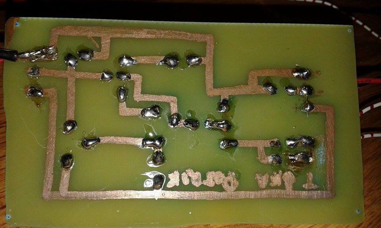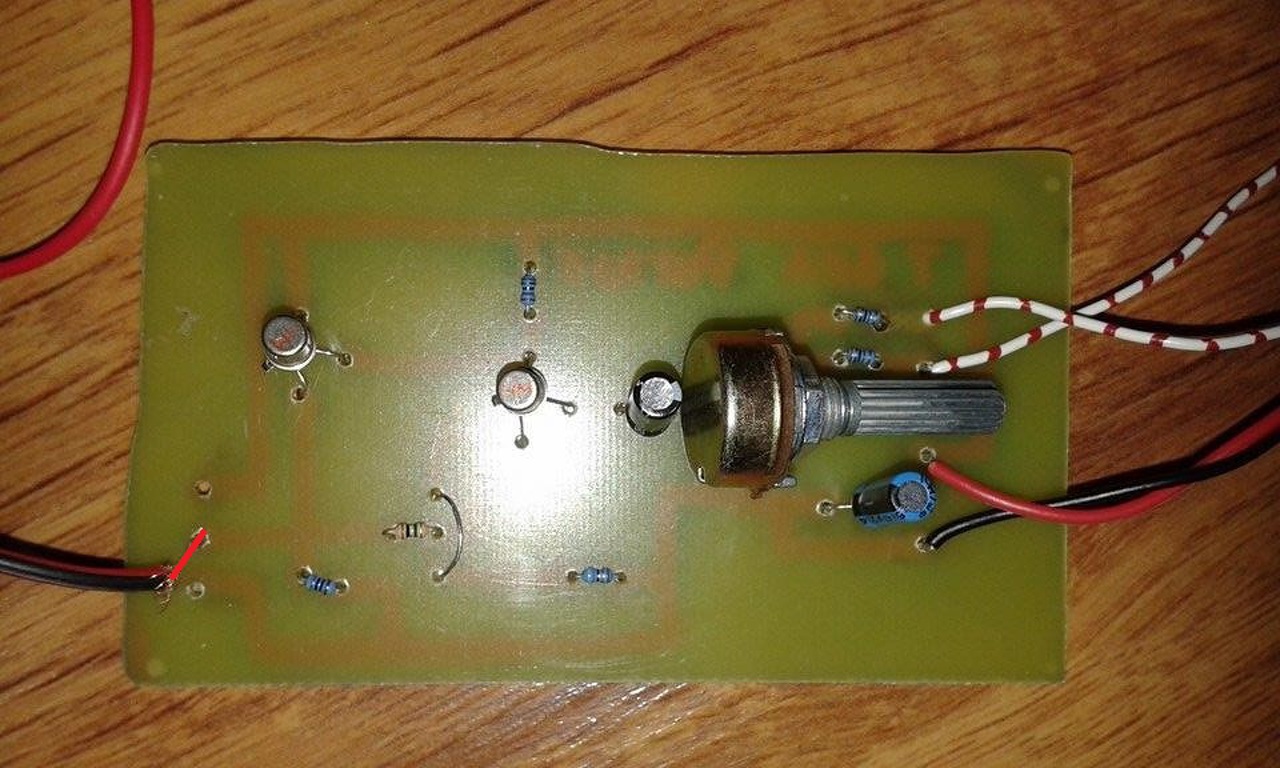 A rajzon lévő C1 lenne a kék kondenzátor kép jobb felén ? Nincs testre kötve a negatív pólusa. Szakadás vizsgálóval nézd meg a bemeneti oldalon a test R1-R2 között a nyákon ahol kapartad a maratást ott tényleg szakadás van. Helyes polaritású tápfeszültség mellett írd meg milyen feszültségeket mérsz a testhez képest a Q1 és Q2 emitter, bázis, kollektorain .