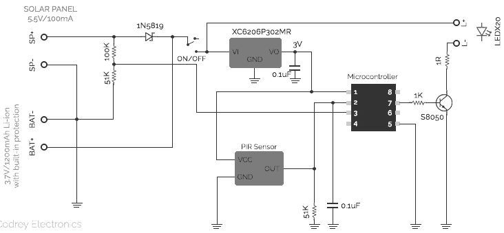 A nyomógombbal ki lehet kapcsolni! Nem az a baj, hogy ki van kapcsolva? Takard le a napelemet( vagy forraszd le) és úgy nyomkodd a gombot. Egy teljesen kikapcsolt állása van és egy bekapcsolt, ami időzített. Mozgásra bekapcsol és kb 20sec múlva ki. Ja és nincs áramkorlát, csak az az 1 Ohmos ellenállás!