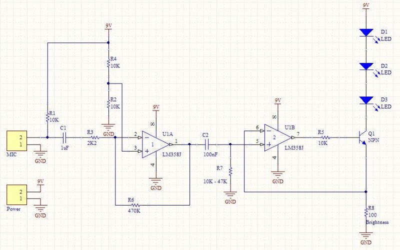 Korábban én is kísérleteztem jó pár megoldással, de egyik sem vált be annyira, mint szerettem volna. Szerintem a müködö megoldás úgy nézne ki hogy: jel(miki v line)->bandpass vagy lowpass->agc->impulzus generáló->meghajtó. Sokan azt irták, hogy nem agc hanem dinamika kompresszor, de szerintem pont hogy AGC kellene.. le és fel szintezni tudó verzió méghozzá. De azt nagyon egyszerűen nem hiszem, hogy meg lehetne oldani. A másik, meg talán ha AVR-be lowpassal bemegy a jel valahogyan, és ott FFT-t ráengedünk. Van AVR-re FFT lib.. nem túl szép, nem túl gyors, de ha kicsi a sample, akkor erre pont tökéletes, hisz nem kell nagy felbontás. De ezt majd talán később. Most viszont találtam egy érdekes linket a témában: Bővebben: Link A video alapján egész jól követi az ütemet, nyilván hangerő függően, mint látható, de alapnak nem rossz. Átrajzoltam altiumba, csatolom, nézzétek meg mit rontottam el de szerintem stimmel. Két kérdés: A becsatoló kondi, 1uF, oké, de ez mi legyen? MKT v valami hasonló ? Az eredeti rajzon nem polarizált van, legalábbis nem úgy néz ki.. Vagy nem polarizált elkó vagy minek kéne lennie szerintetek ? A meghajtó tranyó mi legyen 2n4401 helyett? bc547 mondjuk? Na meg ott az a brightness ellenállás.. azt simán ohm törvénnyel a ledek függvényébe számoljam ki hogy nekem pont mi kell oda? Edgár