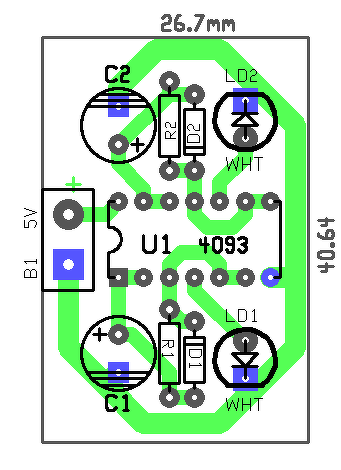 A kapcsolás a két fehér Led villogtatására vonatkozik..