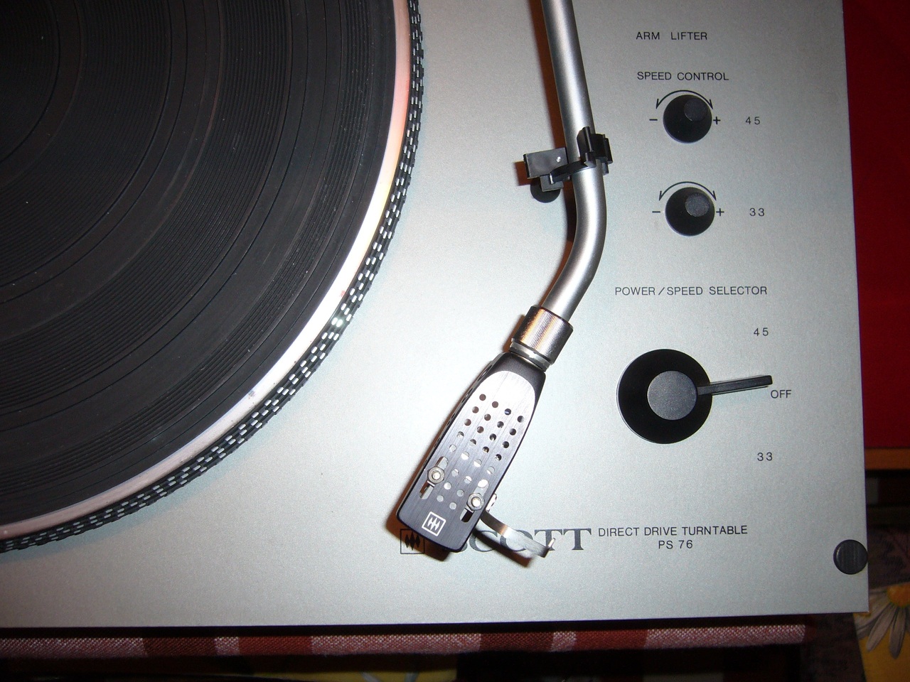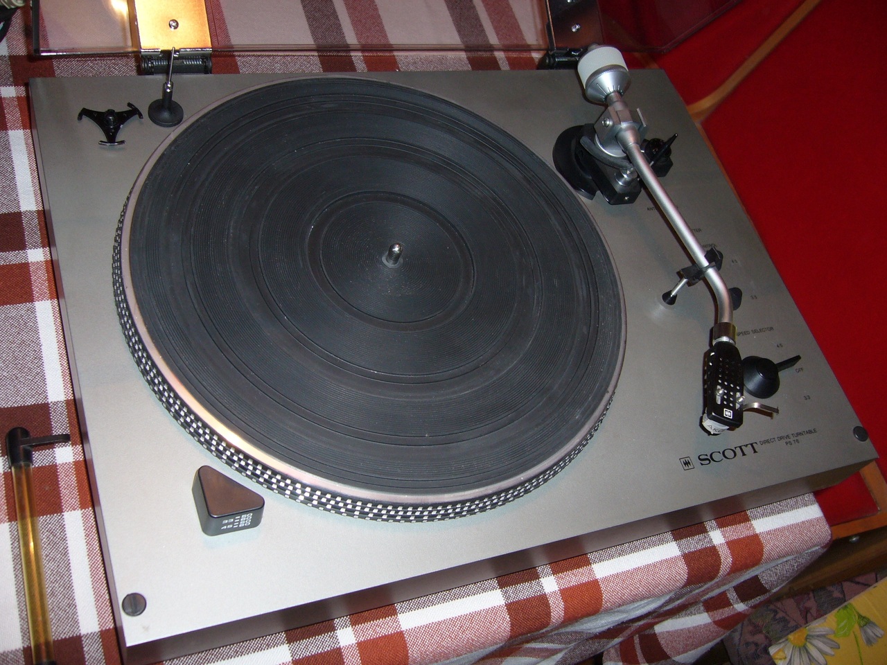A javításról képek itt: http://www.4shared.com/folder/a7VRe1hf/Service.html Ez egy H. H. Scott PS-76 os lemezjátszó. Közvetlen hajtású de léptető motor-szerűnek tűnik, mert szaggatottan mozog a tengely és a tányér lendületétől forog folyamatosan.