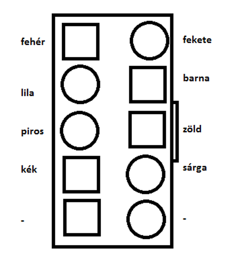 és az alsó 4 (piros, kék, zöld, sárga) vezetékek állandó 12V-t kapnak, a többi 0V