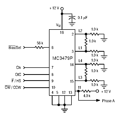 Van MC3479-es léptetőmotor vezérlőm. Ki szerettem volna próbálni, hogy lássam, ezért az adatlapján talált teszt áramkört megépítettem próbapanelen, annyi módosítással, hogy a (fordított) Phase A, meg a 4 tekercs kimenetre ledeket is tettem. A Phase A-n lévőnek A állás kivételével kellett volna világítani, e helyett folyamatosan világított (őt a GND-re kötöttem, így a 12V-ot a 4k-n keresztül kapta és világított kicsit, de a kimenet nem váltott GND-ra, azaz logikai igazra, így folyton ezt művelte). A tekercs kimeneteknek meg gondolom felváltva kellett volna, de azok nagy csendben voltak. Őket a 2-2 kimenetet összekötő 1k és a földre húzott 1k-k közé tettem be, így szerintem ha pl. L1-en megjelent volna a 12V, akkor a hozzá tartozó LED 1k-n, az L2 LED-je 2k-n keresztül kapott volna 12V-nyi tápot. Azaz lehet, hogy világított volna mindkettő, de az egyiknek csak kellett volna. A bemenetek: Bias/Set 56k és aztán GND. Az órajelet kézzel produkáltam (drót 12V-ba és a 7-es pint izgattam vele). A többit hagytam lógni. Már csak így kérdezek: Vajon hány hibát követtem el?