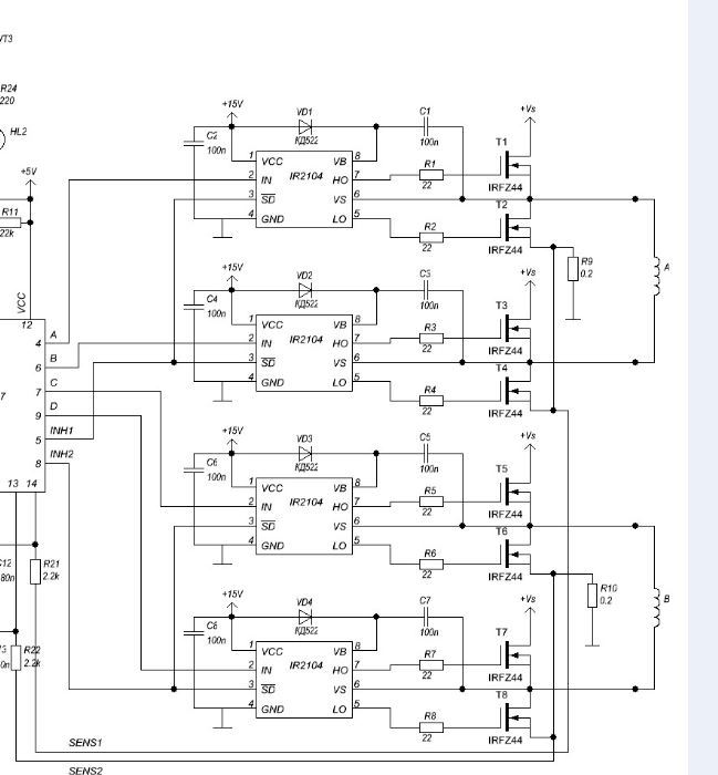 Na beleütköztem a következő problémába. Az l297-es ic-nek van a REF, INH1/2, SENS1/2 lába amikkel nem tudok mit kezdeni ha saját hidat építek. Ezeket hova köthetem be? Egyáltalán muszáj bekötni?