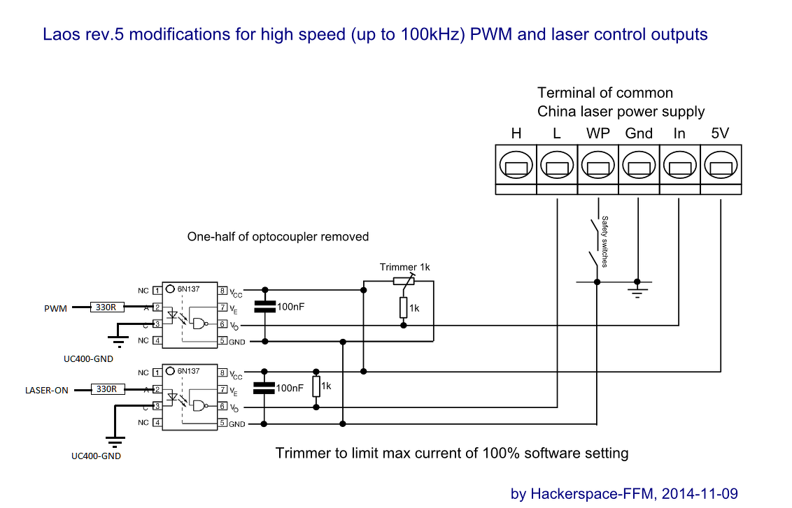 Van egy ilyen kapcsolási rajz amivel a CO2 lézer megy. Mivel én nem értem, hogy hogyan is szabályoz, vagy van e értelme a potinak azért kérdezem tőletek. Jelenleg működik rendesen, de van értelme a potit beépíteni? Azért tenném, hogy a max értéket be tudjam állítani rajta, max 80%-ig lenne a poti beállítva a többit program szabályozza. Vagy fölösleges oda elég az OPTO és kész.