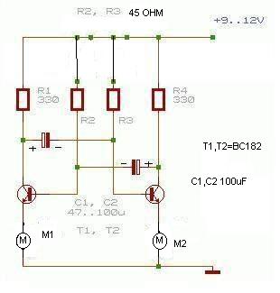 De lehet hogy csak én vagyok az álmos. Egy BC182vel akarsz motorokat kapcsolgatni a maga 100mA-es határával? Szerintem ezzel a astabil multivibrátorral valami PWM-szerű szabályzást hozhattál létre, vagy csak a frekvencia változott... Szerintem ettől lüktethet a motor fordulatszáma, meg nem lehet olyan precízen szabályozni mint egy feszültségszabályzó IC-vel. Hova kell a trafó meg erősítő? :wow2: