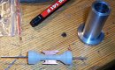 Jaj teee! Most annak semmi értelme nem volt,amit drága pénzből kiesztergáltál! Ha jól látom akkor az csak műanyagból van, meg amire majd tekerni fogod a kábelt, az meg tán nyákdarab. A nyák helyén is eredetileg vasmag van, ugyanis a tekercs belselyében a legnagyobb a mágneses tér, amit a vasmag "kivezet"... Amiről koppintottad, ott a műanyag alatt vasmag van!Annak van értelme!A vasmagnak!Ezzel most csak annyira mentél, hogy könnyebb lesz feltekerni a kábelt a mágnes köré! De létezik ettől olcsóbb megoldás is, hogy hogyan tekerd köré a drótot!! Na hogy lássátok hogy kellett volna megcsinálni, csatolok egy képeket.