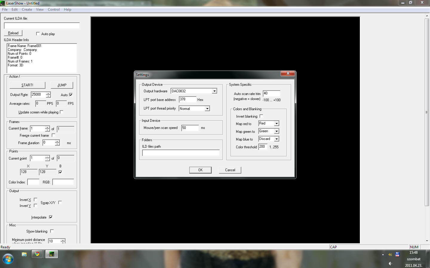 DAC kártyának van kapcsolása? Szerintem FET-el kellene kapcsolni a lézert relé helyett, a relé az lassú. Kellene tudni, mikor milyen feszültséget ad ki a kártya, és hogy mint van ez az egész.