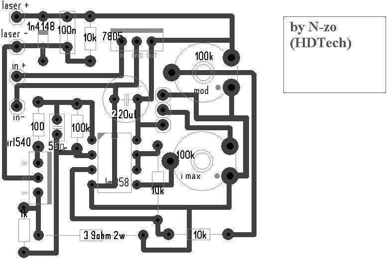 Ebben a 3,3 ohm helyett jó a 4,7 is vagyis belösz vele 140 -150 mA elég a dvd író lézerének mármint a 16x osénak ha hosszútávon akarod használni. én egyébként egy srácnak csináltam meg ezt és az egy kilóohmos helyére 5 kilo ohmos potit tettem azzal még érzékenyen be lehet lőni a megfelelő áramot csak indításkor 1 k ohmon legyen belőve.