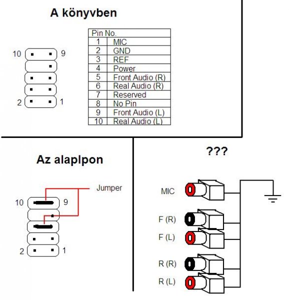 a fennakadásom: van egy gigabyte alaplapom, és én ehhez kaptam egy kis szervizkönyv szerűséget, és abban találtam egy kis leírást audió kivezetésére. viszont ebben van pár kapcsolódási pont, amit nem tudok, hogy micsoda, és mit lehetne/kéne oda kötni. a mellékelt képen van minden, hogy mi van a könyvben, mi van most az alaplapon. e mellet van egy kis firka, hogy mit gondolok én ezekből ezen a gnd az az összes rca ra össze van kötve, és a közepébe, meg csak a megfelelő jel megy be. (remélem értitek majd) ![]() tehát a 3 REF 4 Power 7 reserved helyekre mi való? köszönöm szépen előre is, és bocsi a kicsi off ért!!