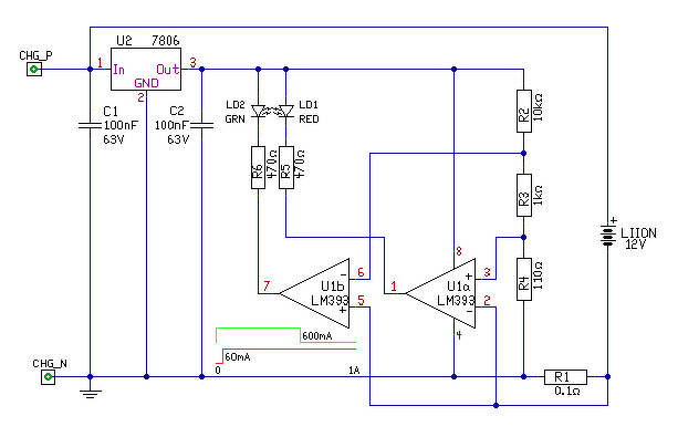 - Kb. 600mA felett világít a piros Led. - A 600mA és 60mA között világít a sárga. - És 60mA alatt a zöld. Tehát amikor már a töltőáram lecsökkent és kész a töltés. A piros-zöld jelzéshez használhatsz közös anódos kétszínűt is. A 0,1Ohm-nak nem kell nagy teljesítményűnek lenni, mert csak 100mW lesz rajta.
