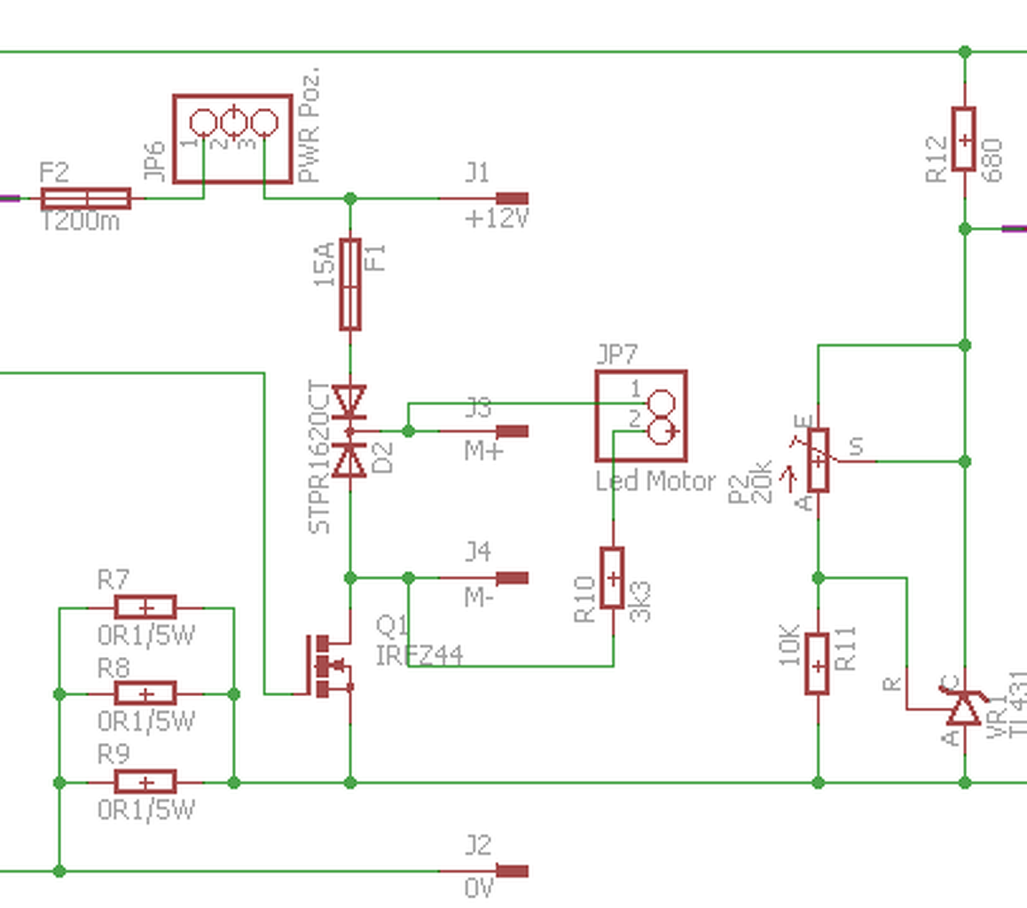 A legkisebb kisütési feszültséget az akku adatlapjából tudhatod meg, amiket én vettem azoknál elvileg 2.5V-ig is le lehet menni. 3V-ig meg úgy általában le lehet menni a lítiumos akkukkal, ha nincs adatlapod, akkor szerintem ezt vedd alapul. Terhelés alatt is a minimális feszültség felett kell maradni. Vacakolok egy ideje hasonlóval, de még csak tervezgetek, de annyit már kikísérleteztem, hogy ha nyugalmi állapotban egy folyamatosan tápon levő CMOS kapcsoló IC, pl. 4066 elválasztja az akkukat a védőáramkörtől és ez kapcsolja a védelem tápját is egy feten, vagy tranzisztoron keresztül, akkor lényegében a védő áramkör is csak akkor fogyaszt, amikor a fúrót használod és olyan állapot sem fordulhat elő, hogy a védő áramkör nem kap tápot, de valamelyik mérő bemenete meg összekapcsolódik valamelyik akkuval. Amikor minden ki van kapcsolva, akkor a motor és az őt kapcsoló fet közötti pont lebeg. Ha meghúzod a ravaszt, akkor ott a motoron keresztül megjelenik a táp (lehetne 0V is). Ezt triggerként felhasználhatod a védő áramkör bekapcsolásához. Ha már a motor forog, akkor a fet és a motor között majdnem nulla Volt van. Ha a motor ki van kapcsolva és a fetje még be van kapcsolva, akkor tényleg 0 V van ott. Ha ezt a különbséget tudod figyelni (pl. TL431-el elemeled egy könnyen kezelhető feszültség szintre), akkor a védő áramkör automatikusan le tudja magát (és a motor fetjét) kapcsolni, ha a fúró már egy pár másodperce áll. De egy kapcsoló is megteszi, ha nem vagy feledékeny. A mellékletben a fent említett feszültség eltolásra egy példa van egy fordulatszám állító áramkörből, ahol a túlterhelést is lehetett figyelni. Neked nem kell mérő sönt, a fet maga elég lehet erre. Ha van helyed elegendő alkatrésznek, akkor szerintem minden akku feszültségét ellenőrizd, ne csak összegezve. Én hőmérséklet mérést is tervezek. Pont azért, mert egy korrekt automatán ki-be kapcsoló védő áramkör nekem 3 akkura is hagyományos módon akárhogy variáltam eddig 60-70 alkatrészt igényelt (a hely meg szűkös), ezért már mikrokontrollert akarok bevetni.