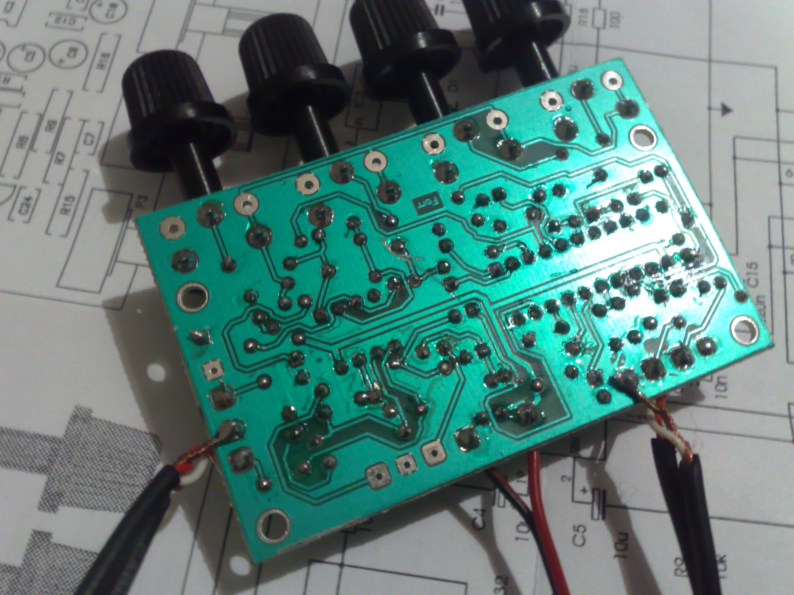 Korábban én is építettem egyet, de nem teljesen működött hibátlanul a nyákterv miatt. Azóta készítettem már neki egy másik nyákot, azt a verziót, aminél már van mellette egy NE5532 és egy 7805 is, ez már tökéletesen működik Ezt ajánlom hozzá neked is. Üdv, Arpy |