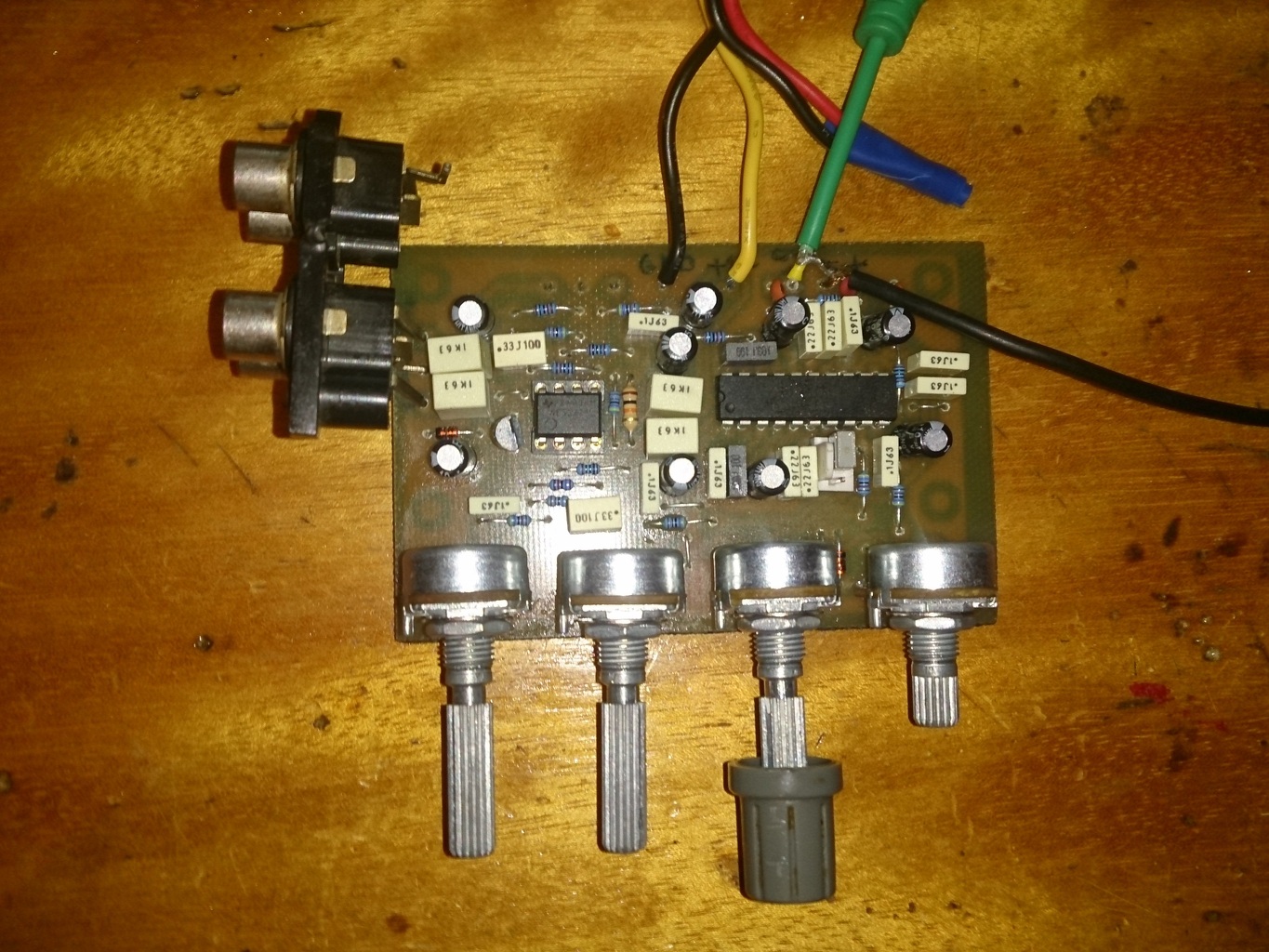 De a kérdéses bemenet általában indokolatlan, tehát sem a bemeneti csatlakozót, sem annak ellenállásait nem kell beültetni. A potméterek jelölt csatlakozóit nem kell összekötni. Azok csak a szélső lábak alternatívái, amire azért van szükség, mert ide trimmereket is lehet tenni a potik helyett, és az ő lábuk nem egysorban, hanem eltolva helyezkedik el. Ezeknek a trimmereknek is van forgatószára, tehát potméterként viselkednek.