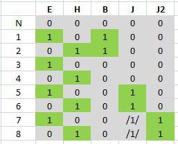 Ha nincs kedved programozni, akkor én úgy csinálnám, hogy 1.: kicsit csökkentsük a variációkat: B=J OR J2, ez 1 VAGY-kapu. Ekkor már csak 4 jelünk van. Kikapunk a fiókból egy SN74154 4/16 dekódert és az ABCD bemenetekre rákötjük a jeleket és majd kiszámolgatod, melyik kimeneted lesz sorban az aktív (0). (A=E, B=H, C=J OR J2, D=J2) remélem így 3 kávé után már kicsit fog az agyam, de nézd át...