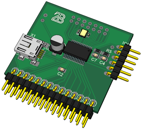 Én is játszottam ilyesmivel, végül a paneljeimre a nevem kezdőbetűit teszem rá (no nem mindet, a második keresztnevem betűje már nem került rá, mert az jellemzően nem használom, csak a hivatalos iratokon). A megtervezése nem tartott túl sokáig, s Eagle-ben alkatrészként készítettem el. Persze előnyerő voltam, mert a "Z" betűt a "Z" nevű játékban (nagy kedvencem volt) klasz formában megalkották már, így hasonlót rajzoltam. Hozzá a "B" már csak annyi volt, hogy illeszkedjen az összképbe. Először még a kettő külön betűként olasható volt (nem is emlékeztem erre a változatra, de a barátom oldalán a közös pinguino projektünkben még az szerepelt).