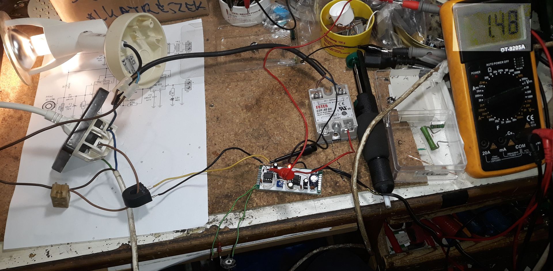- A szilárdtest relénél a felirat 4VDC-től mutatja és az oda csatolt PDF-ben is ez van, a képet csak tájékoztató jellegűnek vettem. Viszont a termék úgy néz ki, mint a képen, 3V-tól már jó, így nem emeltem tápfeszültséget, a 3,6V elég lesz. - Az áramváltó valóban kevés feszültséget ad a billenéshez. Asztalon próbáltam, egy ventilátoros hősugárzóval. I fokozat ~800W, II fokozat ~1600W. Mértem a kondenzátoron a feszültséget, I - 1,5V, II - 3,2V. Természetesen egyikre sem billent át. A Proli007 által javasolt módon az első 555 5-ös lábáról testre bekötöttem egy ellenállást, hogy eltoljam a belső osztó feszültségét. 1,3kΩ-al már stabilan billent a 800W-os fokozatra. Mivel a maró üresjáratban 900W, így remélem jó lesz. Járható út lett volna az áramváltón való többszöri átfűzés? Vagy nem lehet ilyet? Jobb ez így? - Egyelőre a kapcsolt fogyasztó egy 40W-os izzó volt, így az SSR melegedéséről még nincs infóm, de szép nagy lemez a hátulja. A harmadik éles próba után nem kapcsolt az áramkör, néztem, hogy most mi van. Aztán észrevettem, hogy szépen megáll a ventilátor és már nem kapcsol be egyáltalán a hősugárzó. Valószínűleg a hőkioldója megadta magát, majd megnézem. Elővettem egy másikat, az 1000/2000W és szépen működött minden. Proli007! Köszönöm szépen, hogy ismét segítettél!