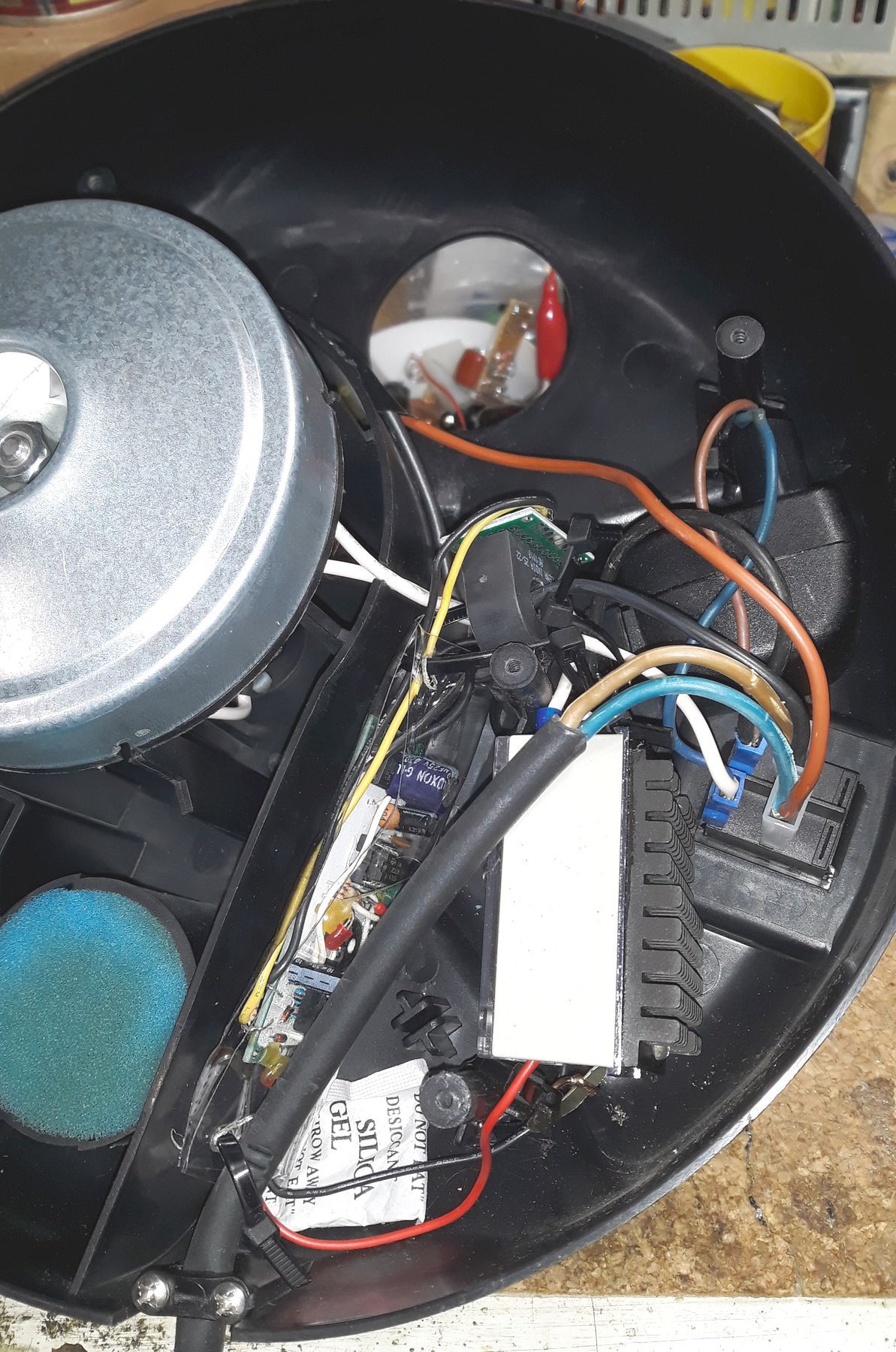 Meg volt az éles teszt, persze nem mart a maró, csak üresen indítottuk. Szépen működik, a módosított osztókörrel. Mivel lágyindítós, nincs nagy induló áram. Úgy néz ki, hogy be tudom építeni a porszívó tetejébe az egészet, annyi hely van benne.