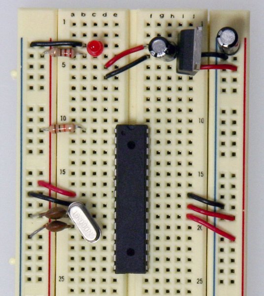 Segítség kéne! Soros porton keresztül szeretnék irányítani led-et számítógépről. Megcsináltam az Rs232 és a max232-es és ATMega8-as kapcsolást a mellékelt ábra szerint, majd még a AVR-Duino chip-et kiegészítettem fesz. -szabályzóval meg oszcillátorral (másik ábra).
