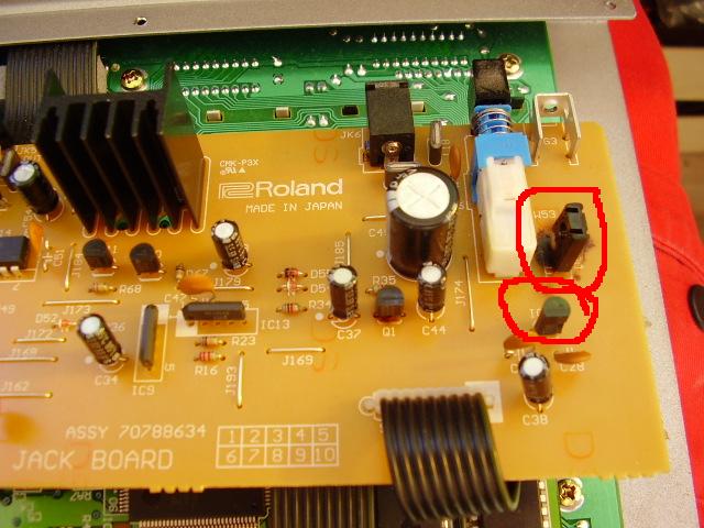 Nemrégiben kezembe került egy Roland márkájú groovebox, ám van van egy kis baja. A táp bemeneten kaphatott valami nagy lökést, és elszállt benne néhány alkatrész, csak sajna nem tudom elolvasni, hogy milyen típusúak. Ha lenne olyan valaki, akinek van ilyen kütyülye, megmondaná a képen pirossal bekarikázott alkatrészek típusát? Vagy esetleg kapcsolási rajz, ha lenne?