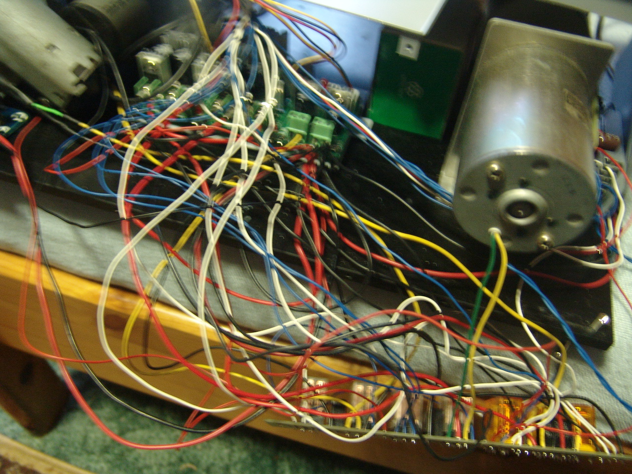 DC, és pwm sem feltétlenül kell. Miért? Azért, mert a vezérlése jóval egyszerűbb, kisebb, áttétellel együtt olcsóbb, sőt általában nincs is szükség egy bontott ablaktörlőmotortól többre. Ez kellőképpen olcsó, az áttétele adott, megfelelő a nyomatéka, a 12V-os DC hajtáshoz mivel nem vesz fel túl nagy áramot, egy mezei áteresztőtranzisztoros szabályozó is elég (az enyém mivel még nincs készre szerelve analóg labortápról megy), nem kell pwm sem, és egy átkapcsolóval van hátramenet amire gyakran szükség van, ha a sorszigetelés közben vissza kell hajtani egy fél vagy negyed menetet. Külön fékre sincs szükség, mert az áttétele ezt a feladatot is ellátja, megállás után nem fog elmozdulni egyik irányba sem. Nagyobb teljesítményigény esetén pedig kapu tolómotor, de ez már ide sokkal több mint elég, ami nekem van az 550Nm körüli nyomatékot tud a kihajtás tengelyén.