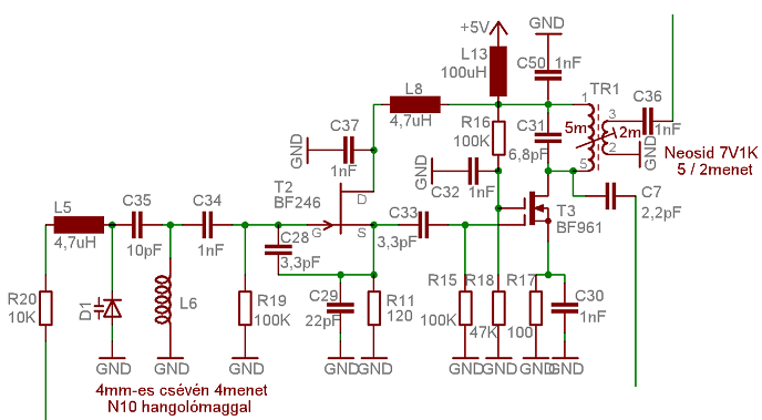 Hát persze hogy csak URH-n jó. Ahol kis induktivitások kellenek. Van olyan helyzet, ahol a 2 menet is sok!. Meg persze volt, hogy inkább tekertek több menetet, és azt "rontották el" egy sárgaréz vagy alumíniummaggal, minthogy drága porvassal csinálták volna meg az adott rezgőkört. Szép példákat látunk a nem ferromágneses hangolásra a régi csöves tévék dobváltóinál.