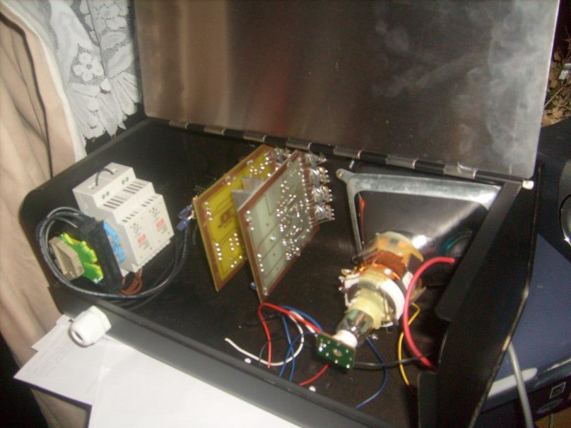 A cso mellett, ahol van hely oda kerul a nagyfesz inverter es ket ruddal lehet allitani majd a potikat az elolaprol. A doboz hata fele szereztem egy beleillo zart alu kalitkat, ott lenne az rf resz a marker generatorral, bar ez utobbi lehet hogy mashova kerul.