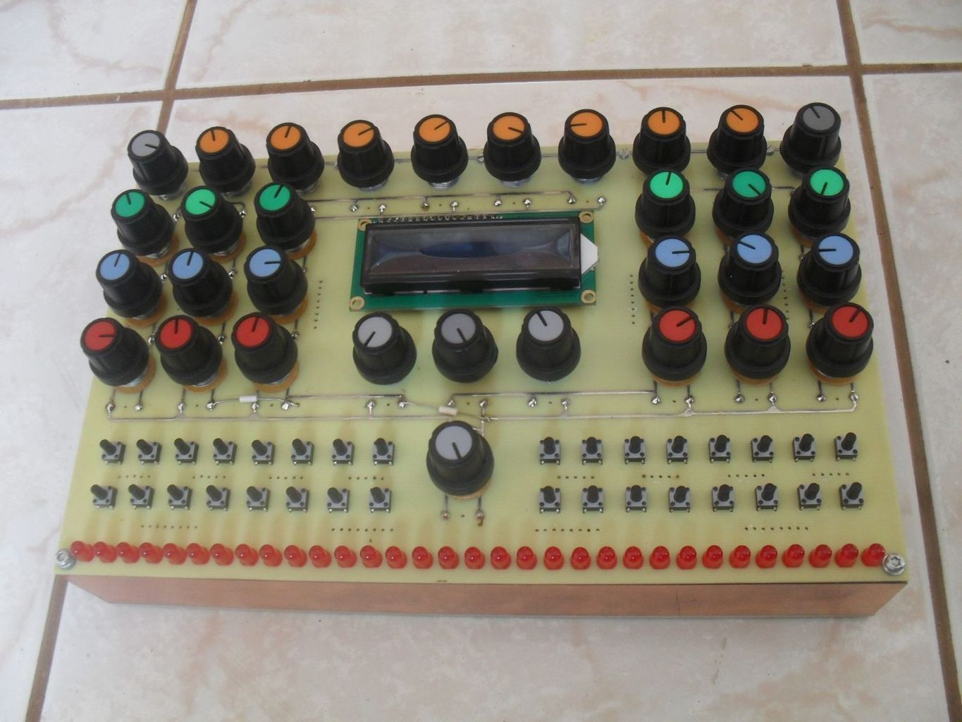 Ennek csak egy feltétele van : értened kell angolul . Anélkül nem fog menni csak kínlódva. Mondjuk kezdd a Idézet: címszó alatt az "introduction" menüvel.„MB Hardware Platform” Ez alatt találsz egy csomó project leírást, pl. mindjárt az elején a MIDIBOX64 egy variációját, ami hasonlít az igényedhez : A MIDIbox64E with 16 rotary encoders, 16 LED rings and 32 buttons. Meg kell ismerkedni az egyes modulok felépítésével, kezdve a Core (mag) modullal, eköré már csak egyszerű perifériák (led meghajtók, kapcsolómátrix vezérlők, stb.) kellenek.
