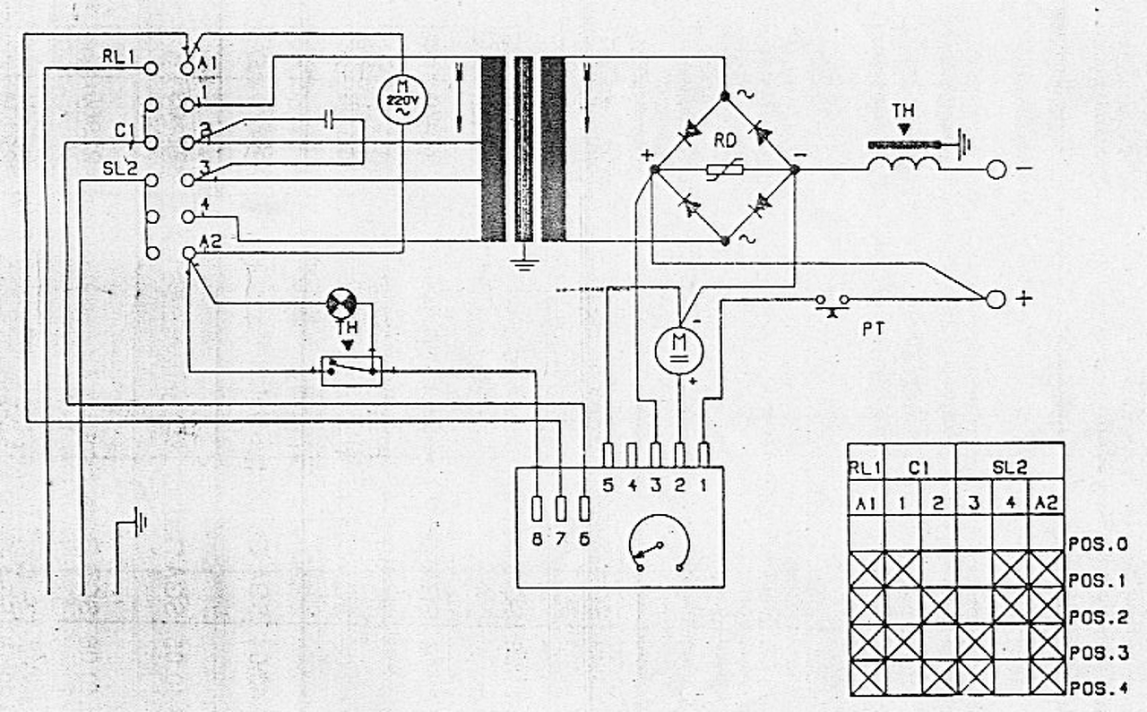 Az valóban nem a te géped rajza. Alapvető különbségek vannak. A primerje megcsapolásos, az alsó kivezetés és a hozzá legközelebbi, ugyanolyan vastag, csak két szál van a varnis csőbe a 220.v. A többi az alacsonyabb fokozat, a vége vékonyabb is. A szekunderje a grécre megy, nem két utas. Az egyenirányítóról ami le jön, a pozitív a munkakábelre, a negatív a fojtón keresztül a testre megy. A toló panel a főtrafóról kap áramot. Ha ki akarod kapcsolni, körbe kell tekerni a fokozat kapcsolót, a hatodik fokozatról nem lehet egyből kikapcsolni, hiába ott van mellette a nulla. Ez a gyári állapot. Valószínű azért nyúltak bele, mert az a gép gyári állapotába nehezen használható, nem probléma mentes. Ha vissza olvasol, találsz rá magyarázatot, és megoldást.